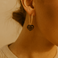 Hjerte hoops med røgkvarts i forgyldt sølv
