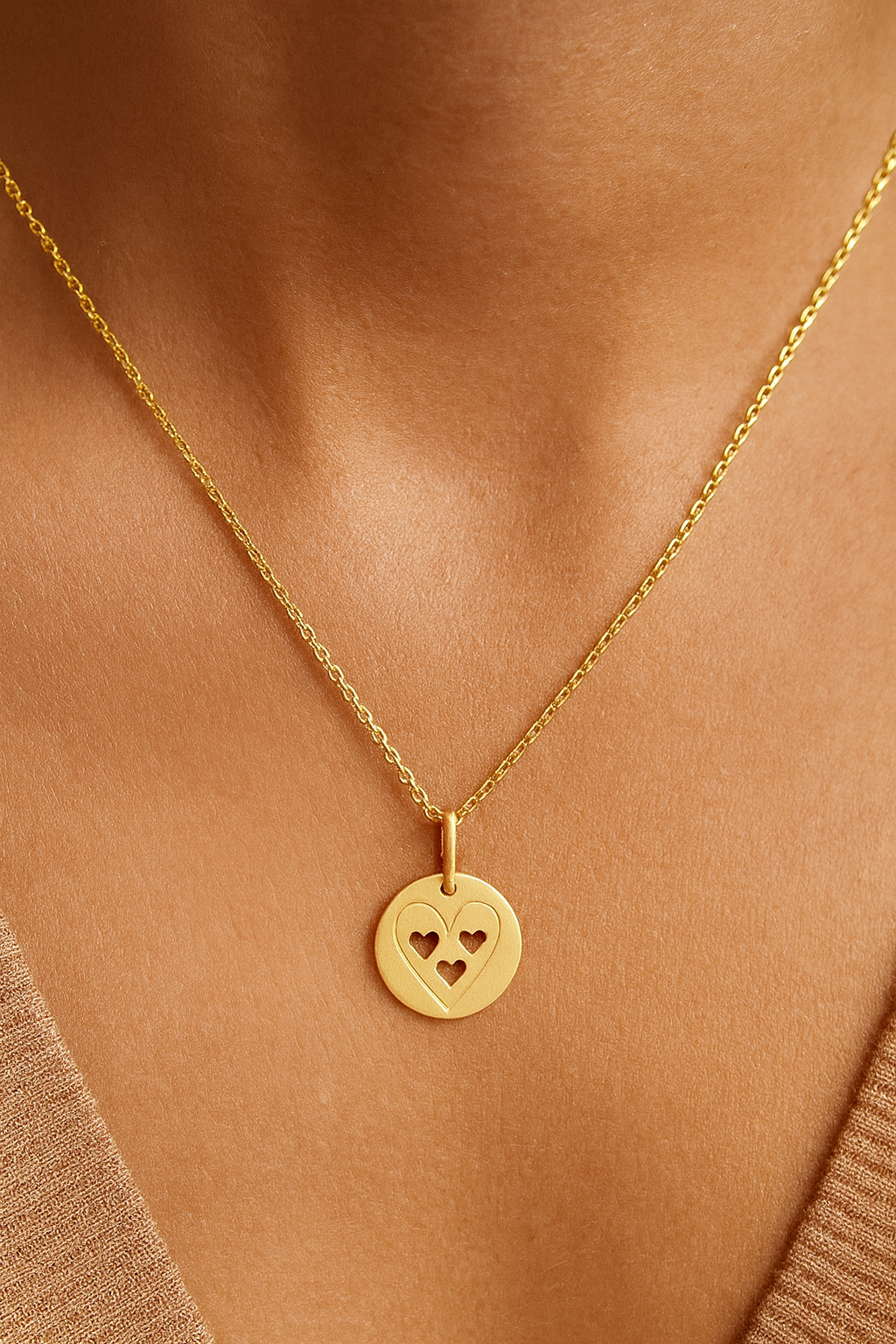 Vedhæng med motiv af tre udskårne hjerter i 14 karat forgyldt sterlingsølv er et personligt smykke, som er oplagt som morsdags gave, julegave og/eller fødselsdagsgave til en du holder af. Eller hvis du blot ønsker at forkæle dig selv. Vedhænget kan let kombineres med Frk. Lisberg’s mange andre message vedhæng, som alle også fås i 14 karat forgyldt sterlingsølv. På den måde får du hurtigt sikret en god gave, som kan bringe glæde, eller et flot sæt som du stolt kan vise frem. Vedhænget kan kombineres og bruges til både hverdag og fest, alt efter hvad man personligt ønsker.