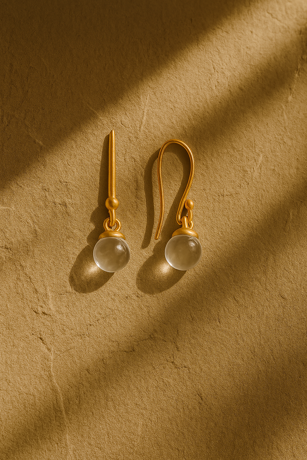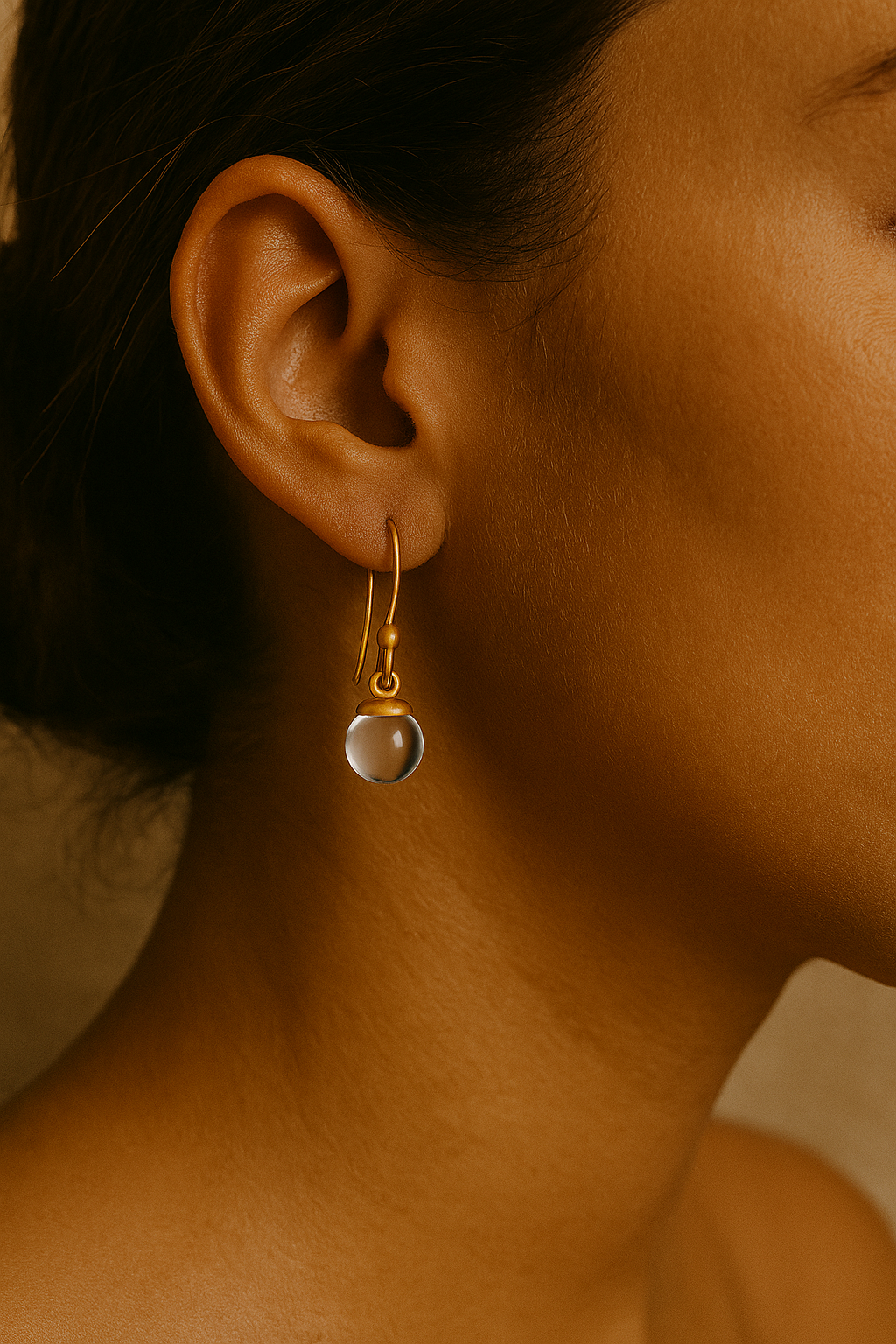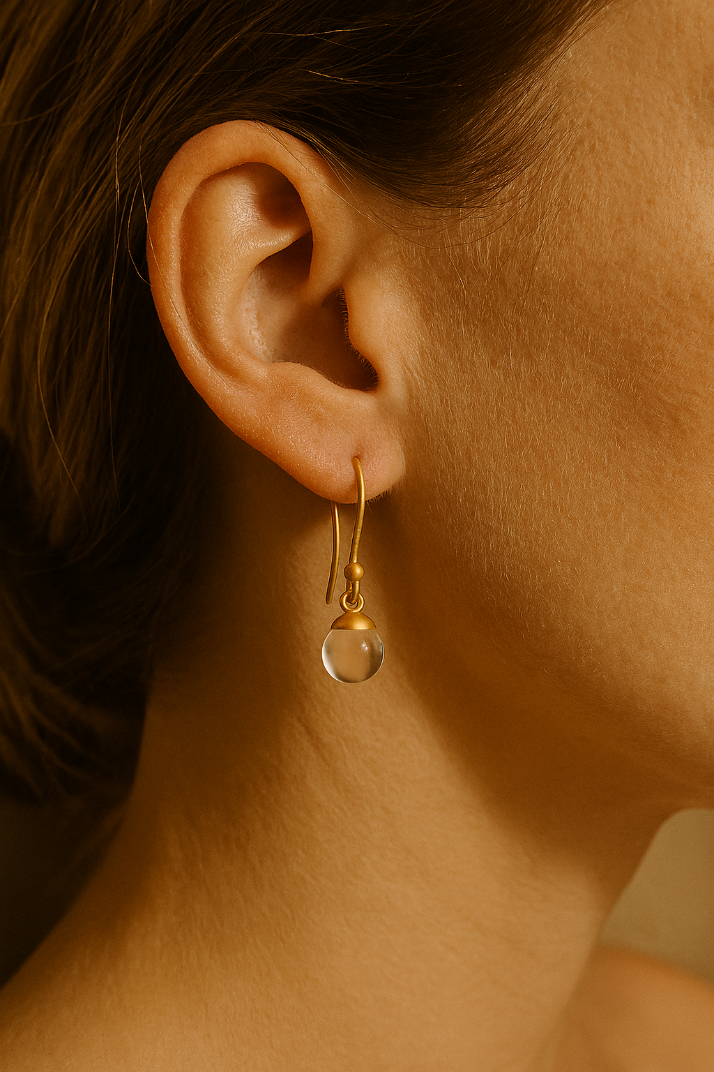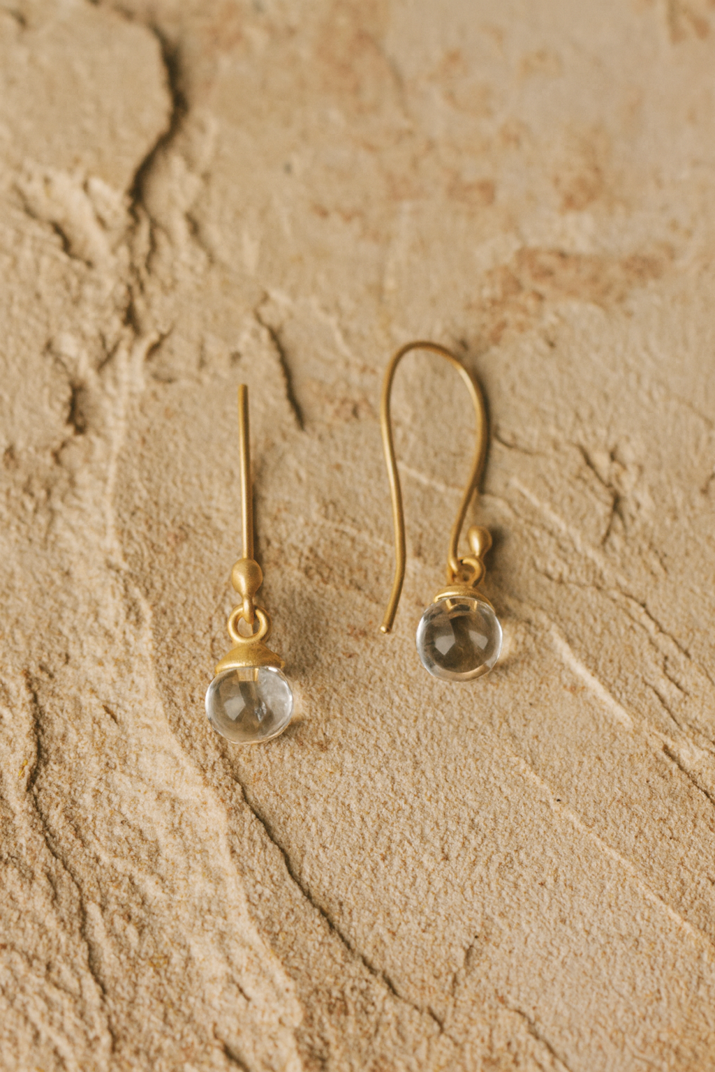 Columbine øreringe klar kvarts i 14 karat forgyldt sterlingsølv. Columbine øreringene findes i to forskellige størrelser: small og medium.