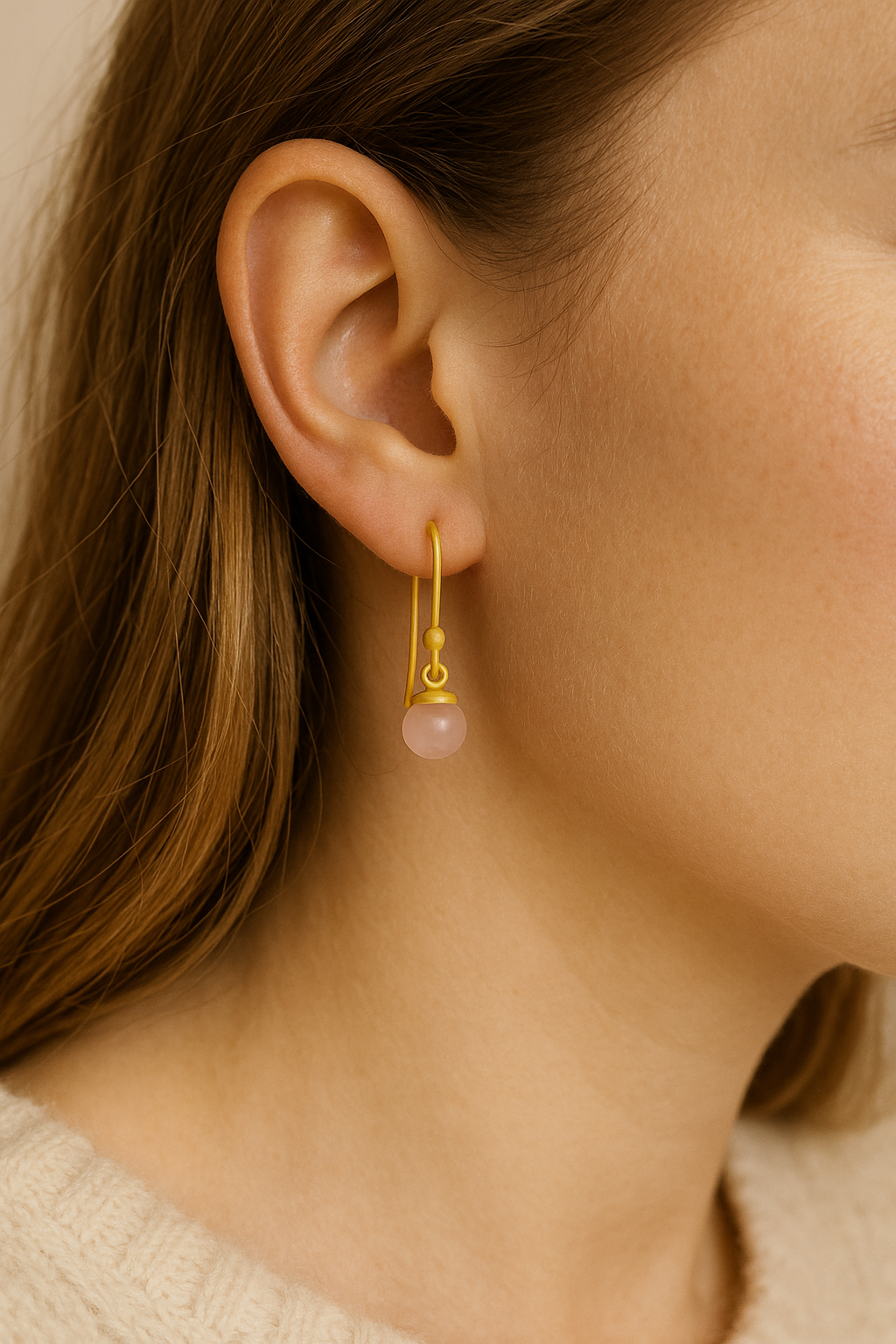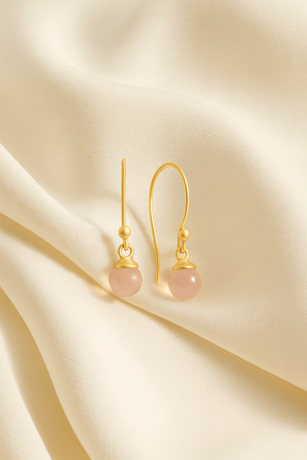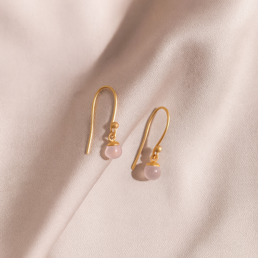Columbine øreringe med rosa chalcedon i 14 karat forgyldt sterlingsølv. Columbine øreringene findes i to forskellige størrelser: small og medium.
