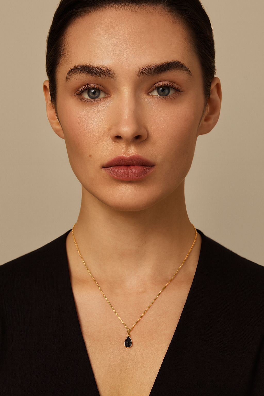 Produktbeskrivelse – Sophie vedhæng med en facetslebet sort onyx i 14 karat forgyldt sterlingsølv