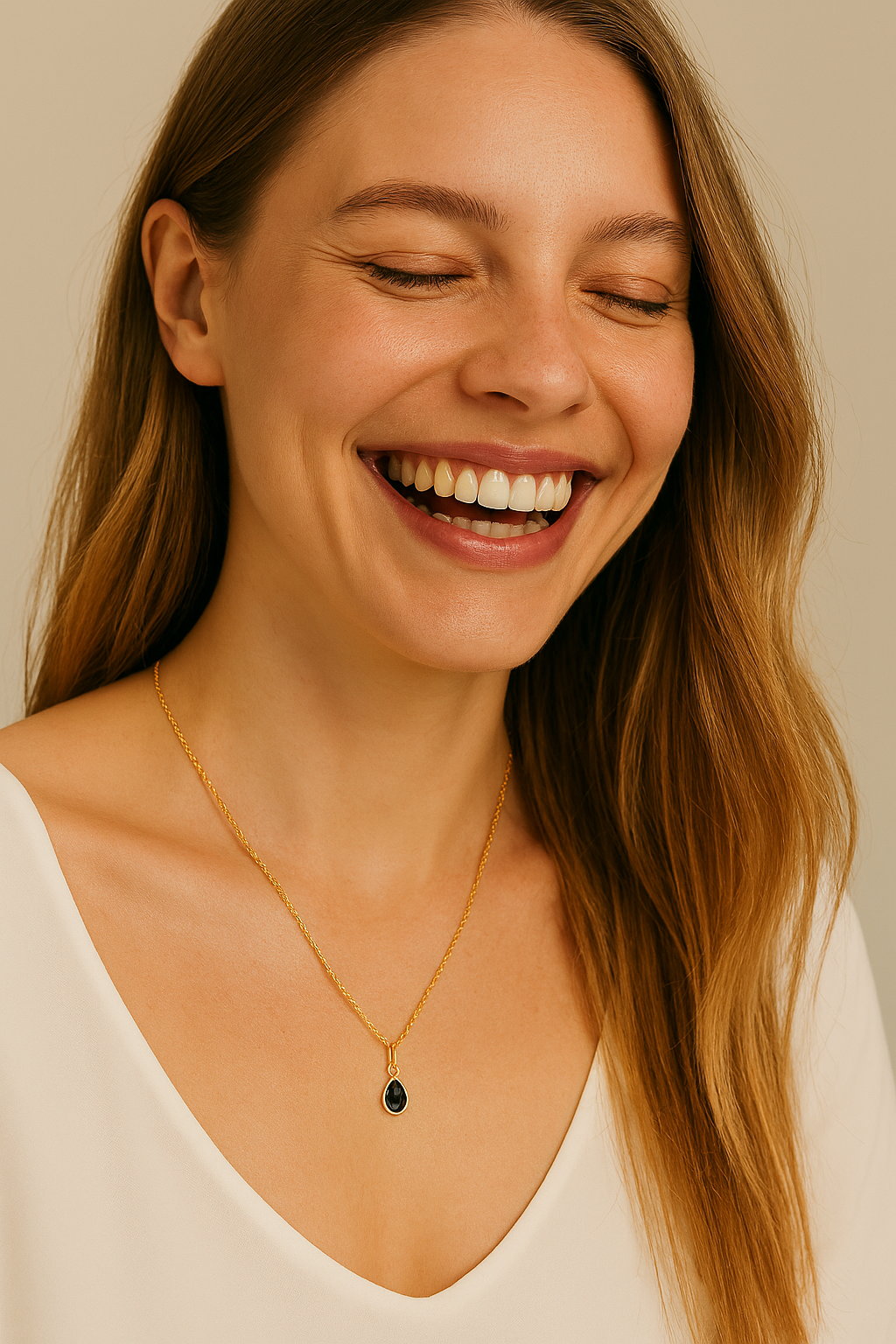 Sophie vedhæng med en dråbeformet sort onyx i 14 karat forgyldt sterlingsølv er et personligt smykke, som er oplagt som morsdag gave, barselsgave, julegave og/eller fødselsdagsgave til en du holder af. Eller hvis du blot ønsker at forkæle dig selv. Vedhænget kan let kombineres med Frk. Lisberg’s mange message vedhæng, som alle også fås i 14 karat forgyldt sterlingsølv. På den måde får du hurtigt sikret en god gave, som kan bringe glæde, eller et flot sæt som du stolt kan vise frem. Vedhænget kan kombineres og bruges til både hverdag og fest, alt efter hvad man ønsker.