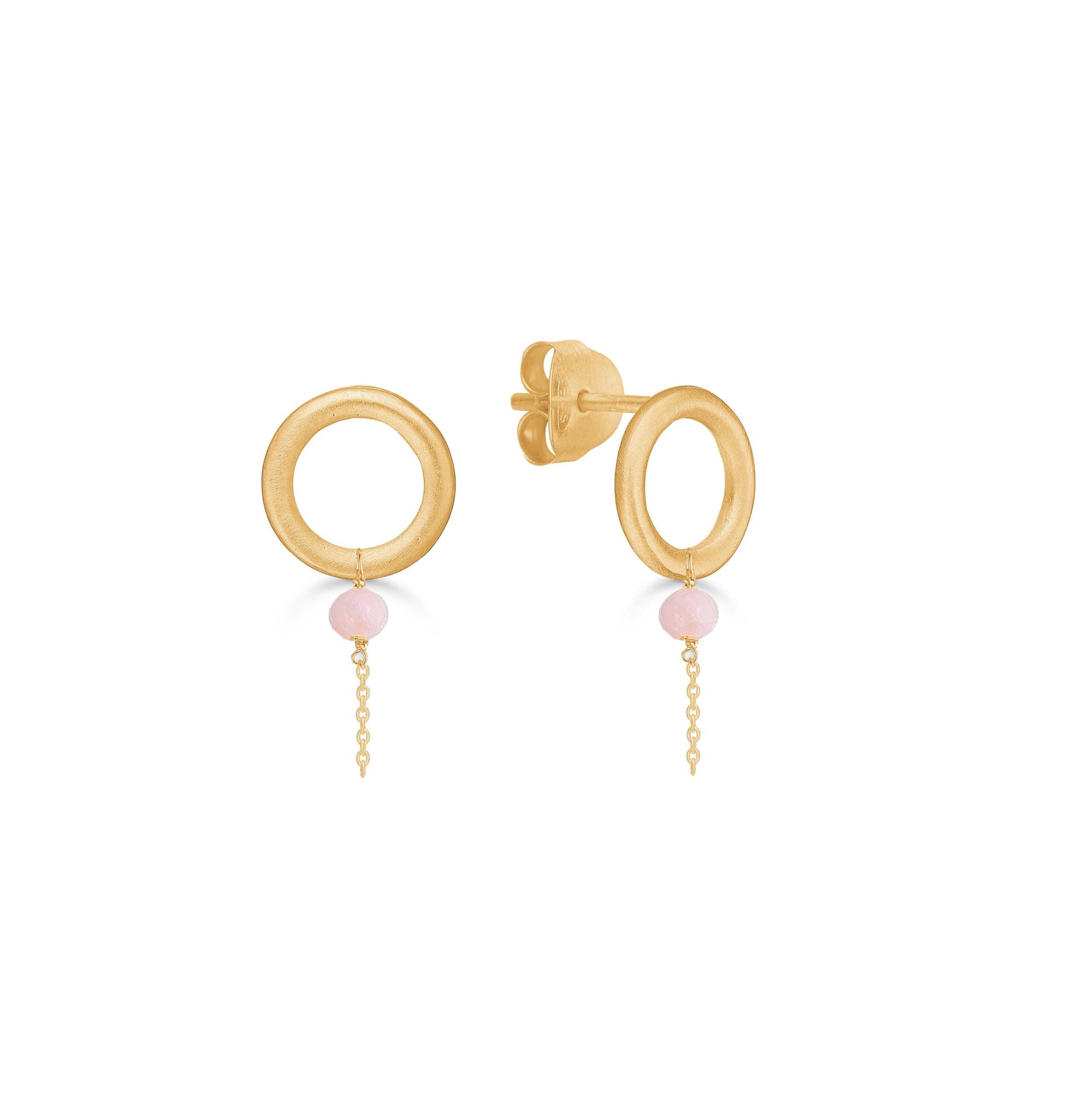 Ørestikker i 14. karat forgyldt sterlingsølv med små rosa calcedon ædelsten.