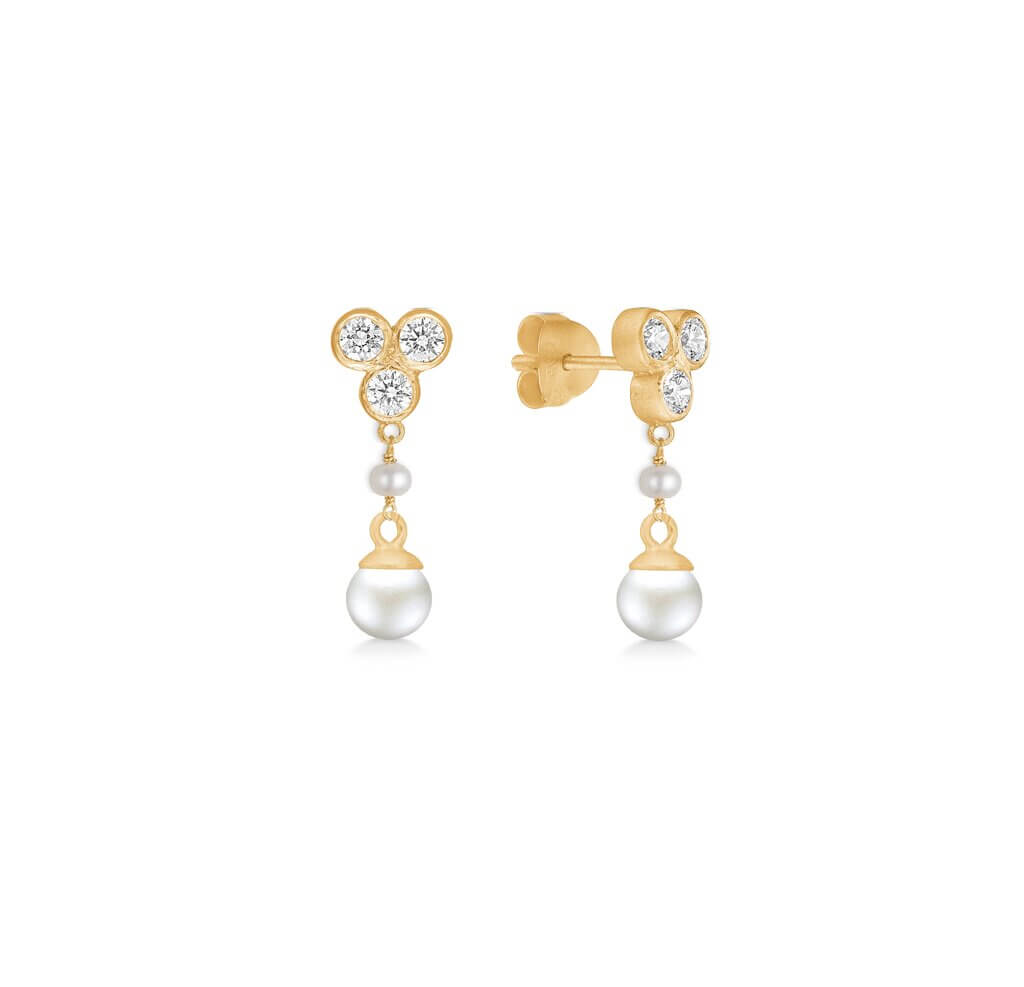 Elegante øreringe med ørestik i 14 karat forgyldt sterlingsølv og hvide ferskvandsperler.