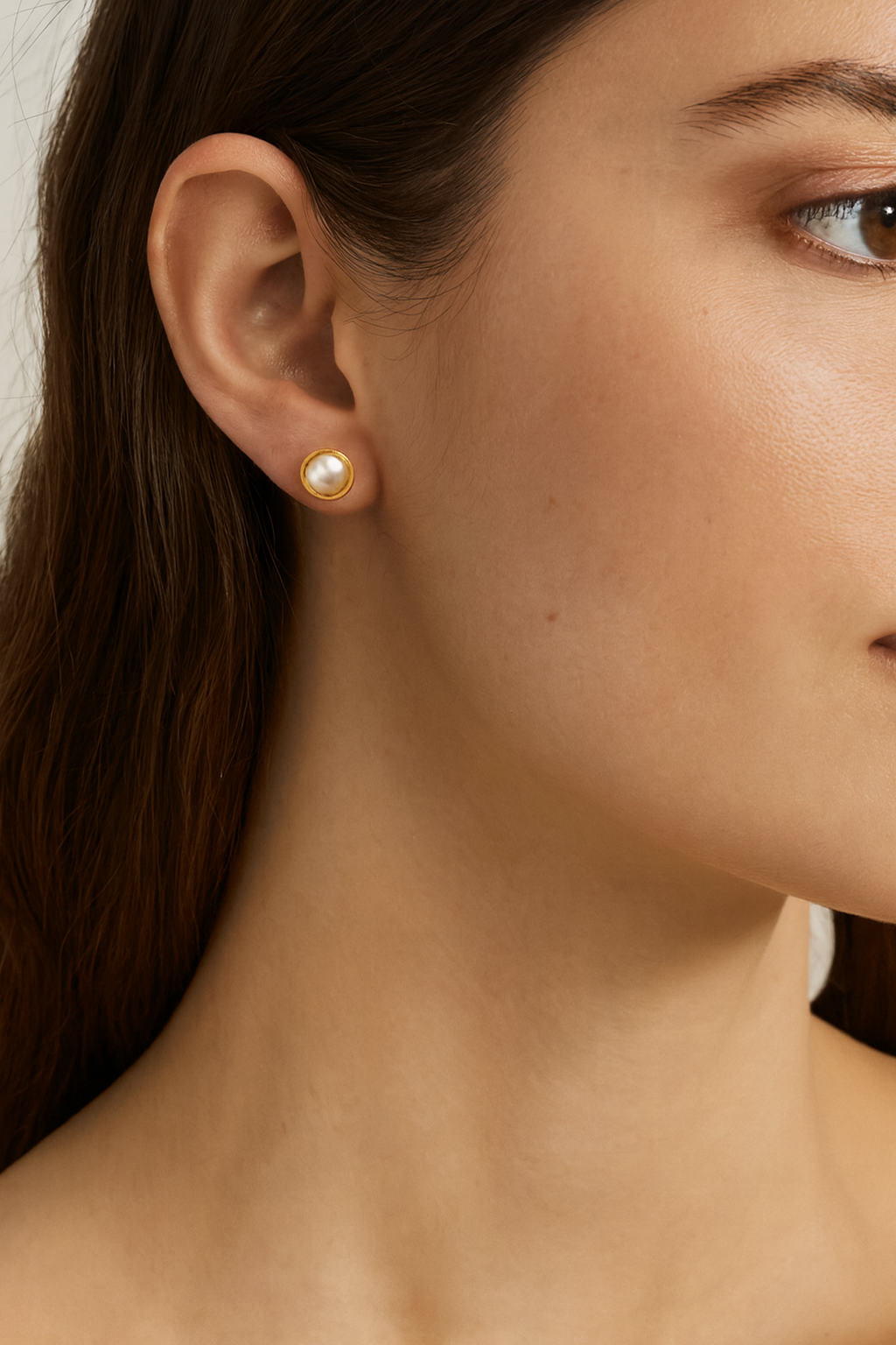 Celia ørestik med hvid ferskvandsperle i 14 karat forgyldt sterlingsølv fra Frk. Lisberg. Øreringene kan bæres som sæt sammen med Frk. Lisberg’s mange message halskæder, armbånd og ringe, hvis man ønsker det, men kan sagtens bæres alene. Øreringen er formet som en cirkel, og er dermed meget enkel, og passer til alt. Findes også i andre farver, find dem her.