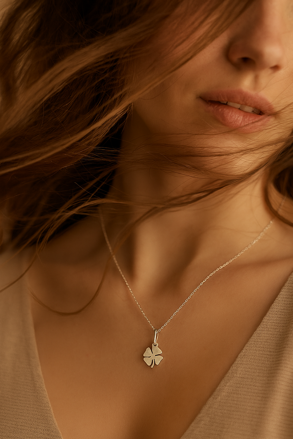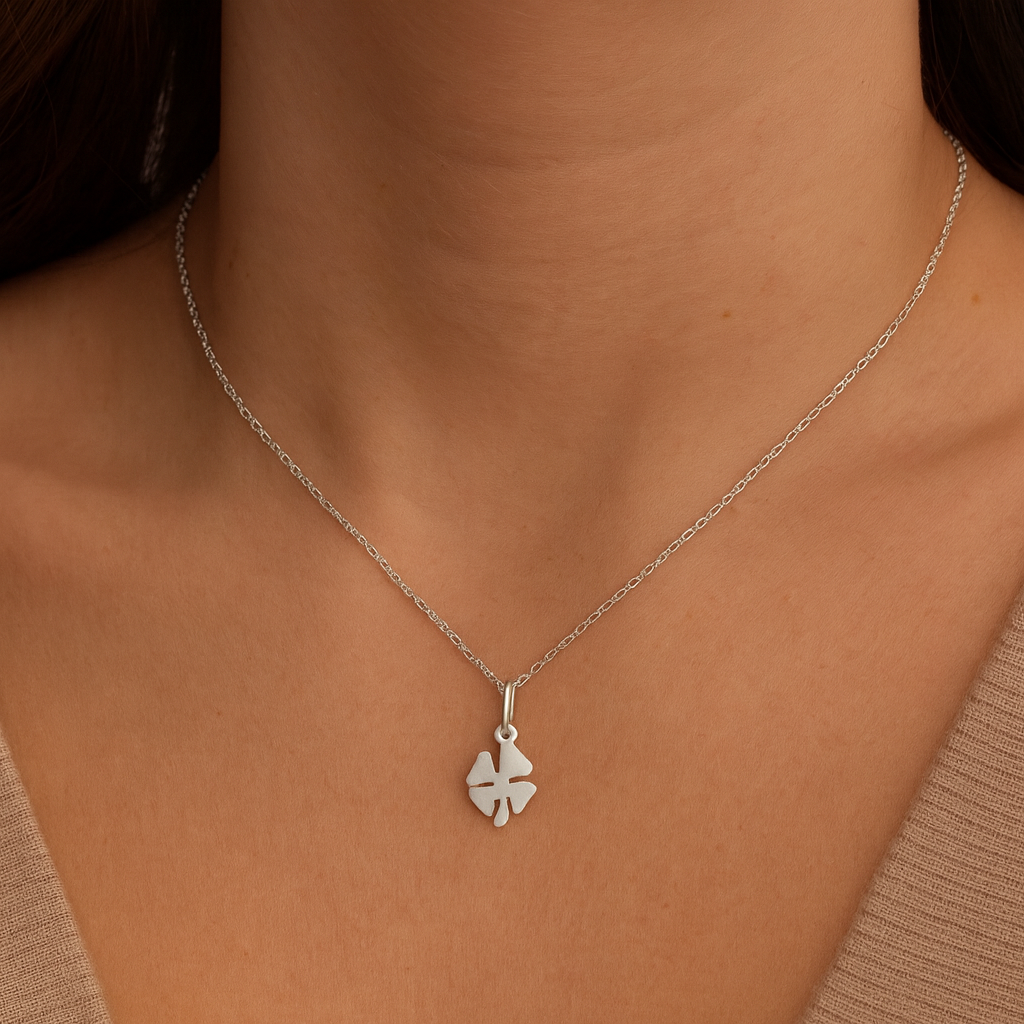 Vedhæng med motiv af en firkløver i sterlingsølv