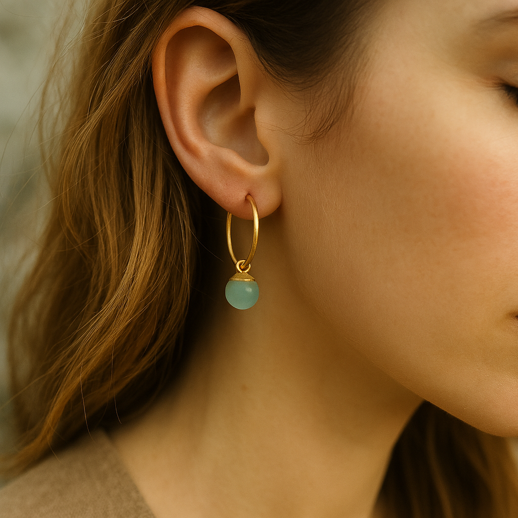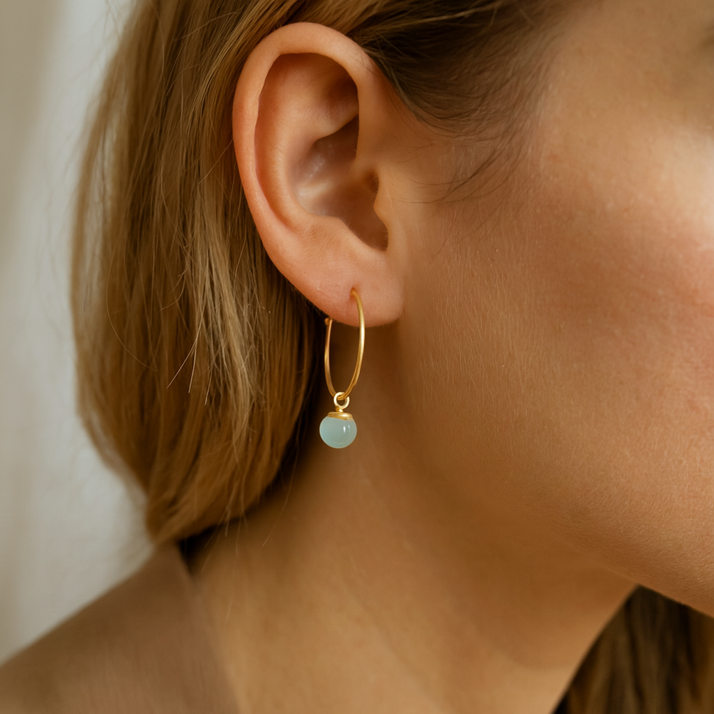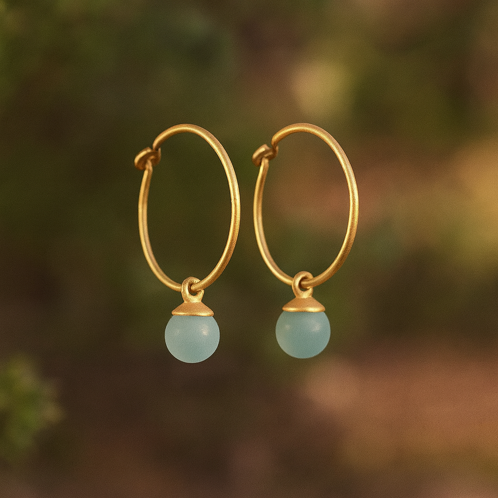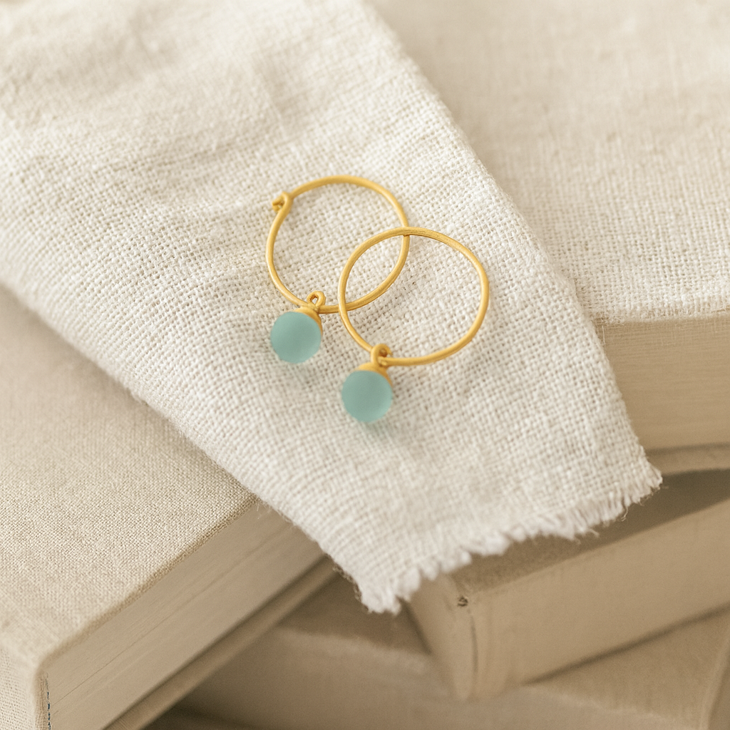 Columbine creol øreringe med aqua chalcedon i 14 karat forgyldt sterlingsølv. Columbine øreringene findes i to forskellige størrelser: small og medium.