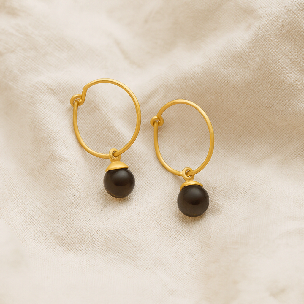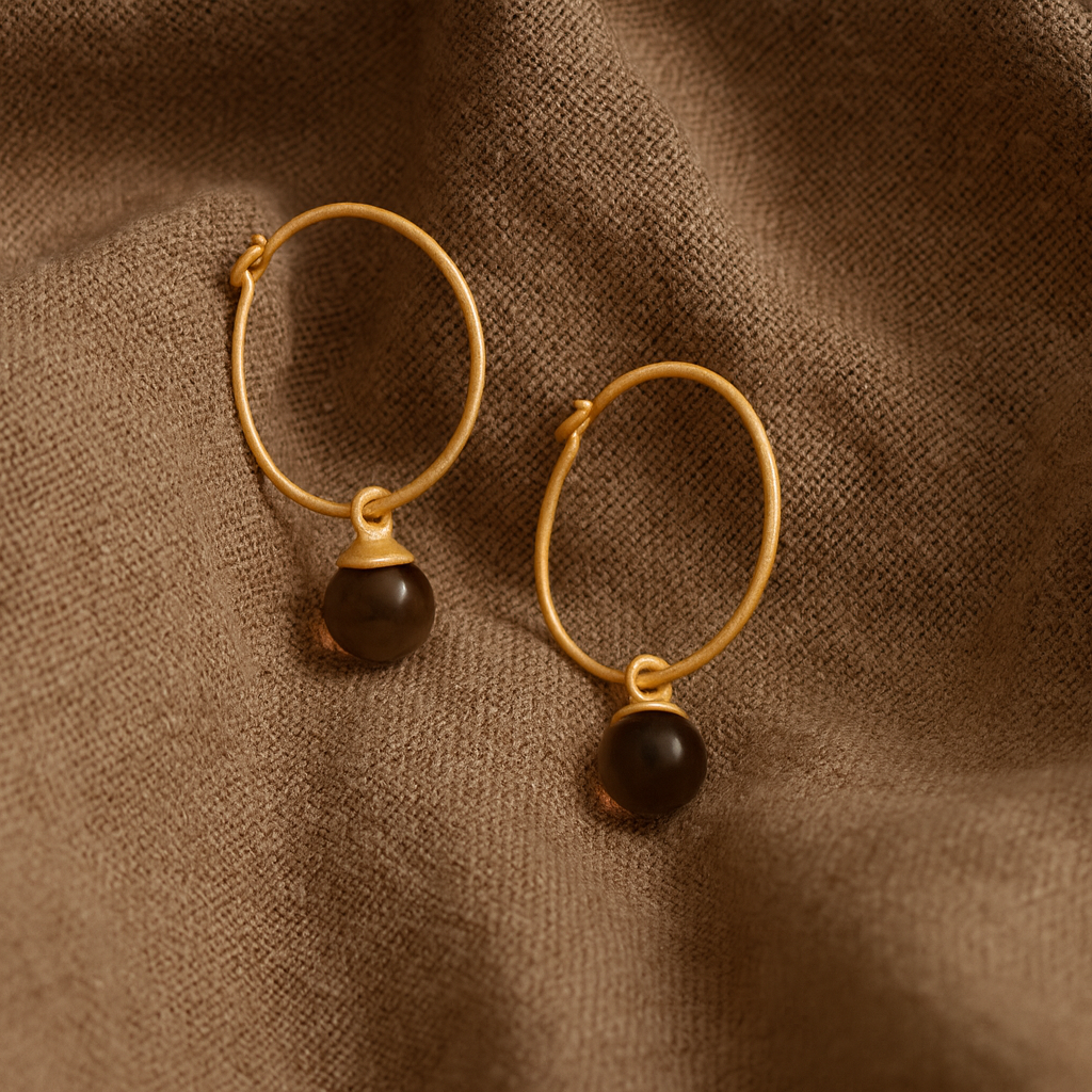 Columbine creol øreringe med røgkvarts i 14 karat forgyldt sterlingsølv. Columbine øreringene findes i small og medium.