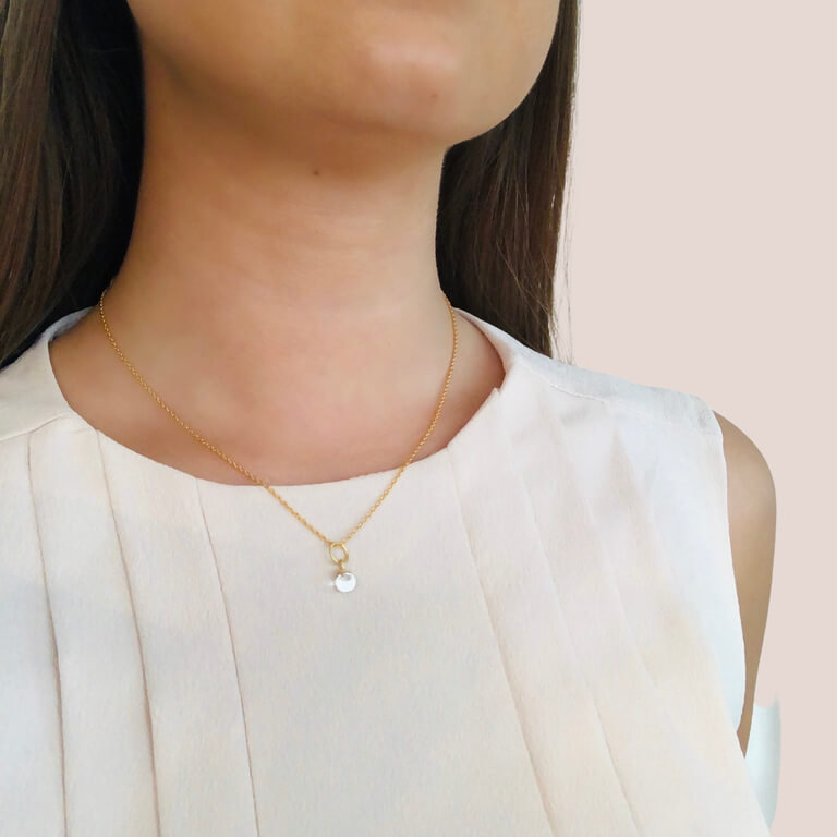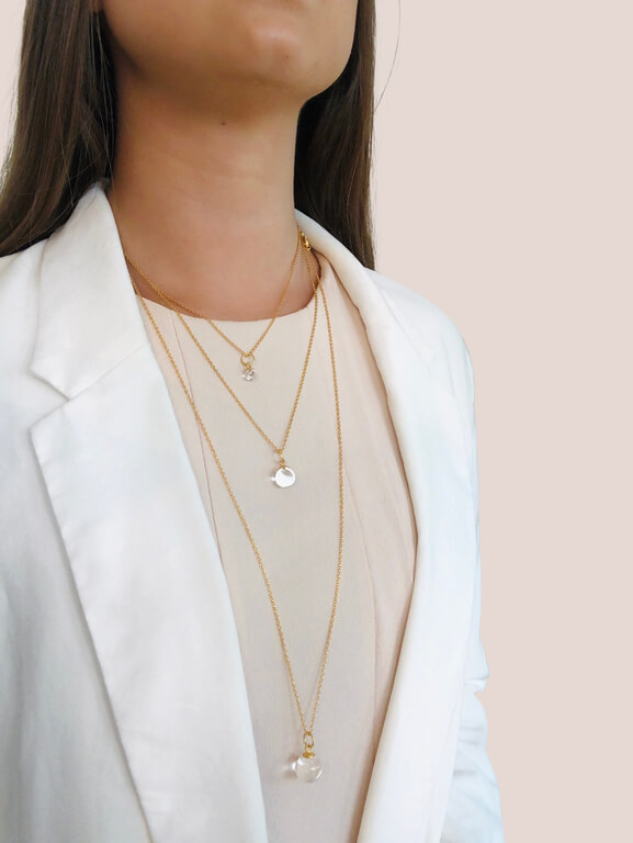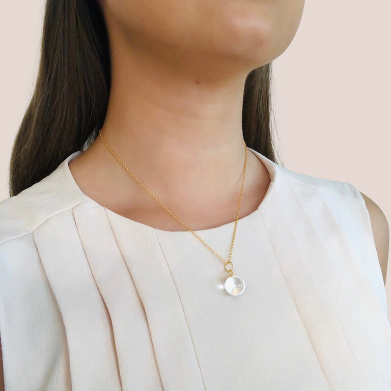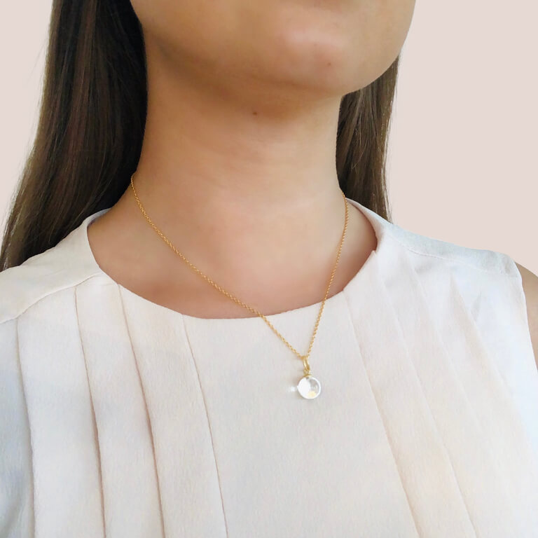 Columbine klar kvarts i 14 karat forgyldt sterlingsølv. Columbine vedhængene findes i tre forskellige størrelser: small, medium og large.
