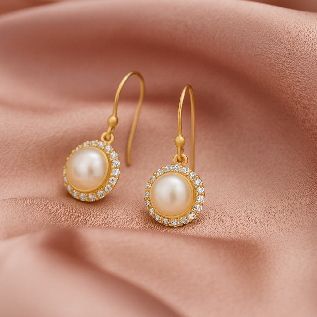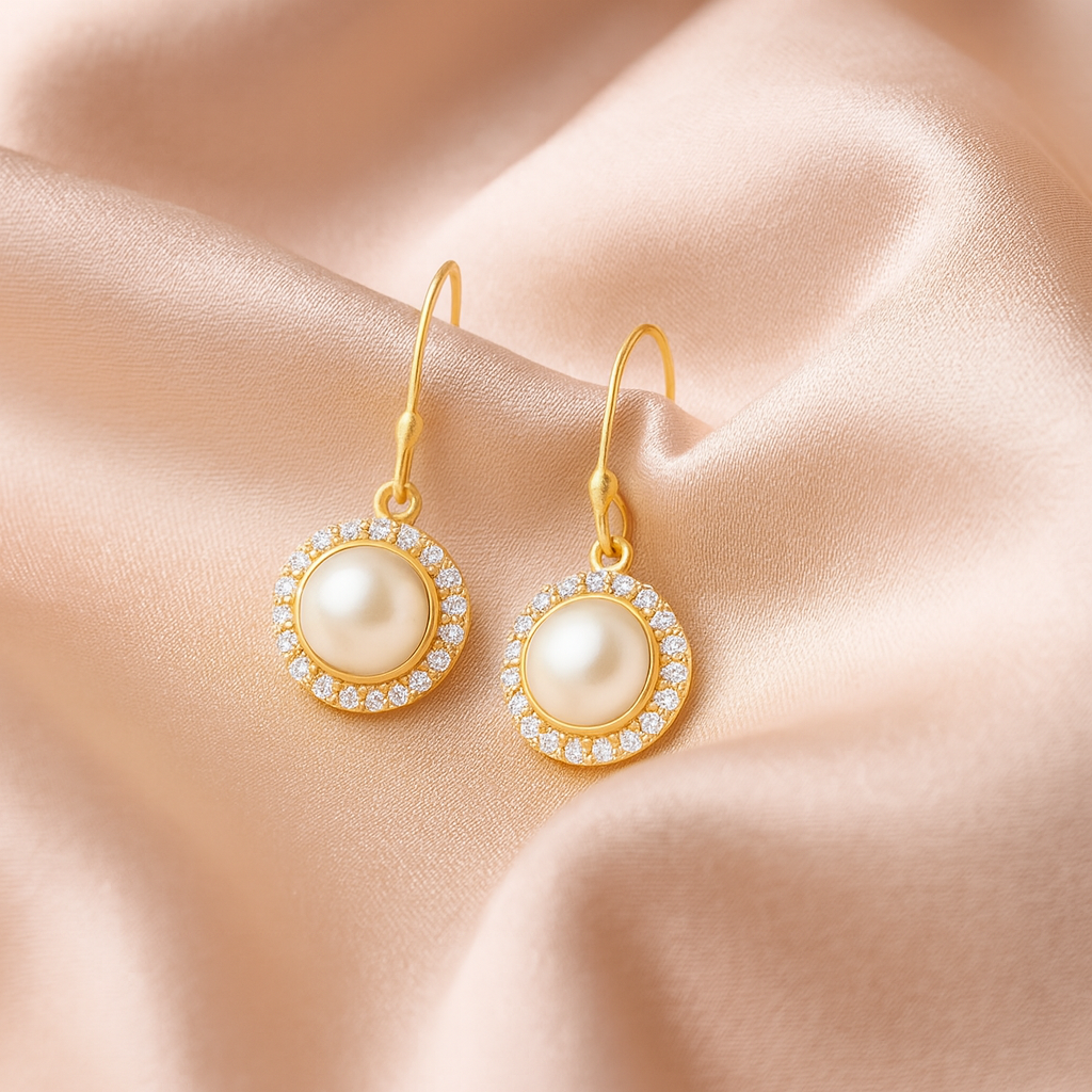 Daisy øreringe med hvid ferskvandsperle og zirkonia
