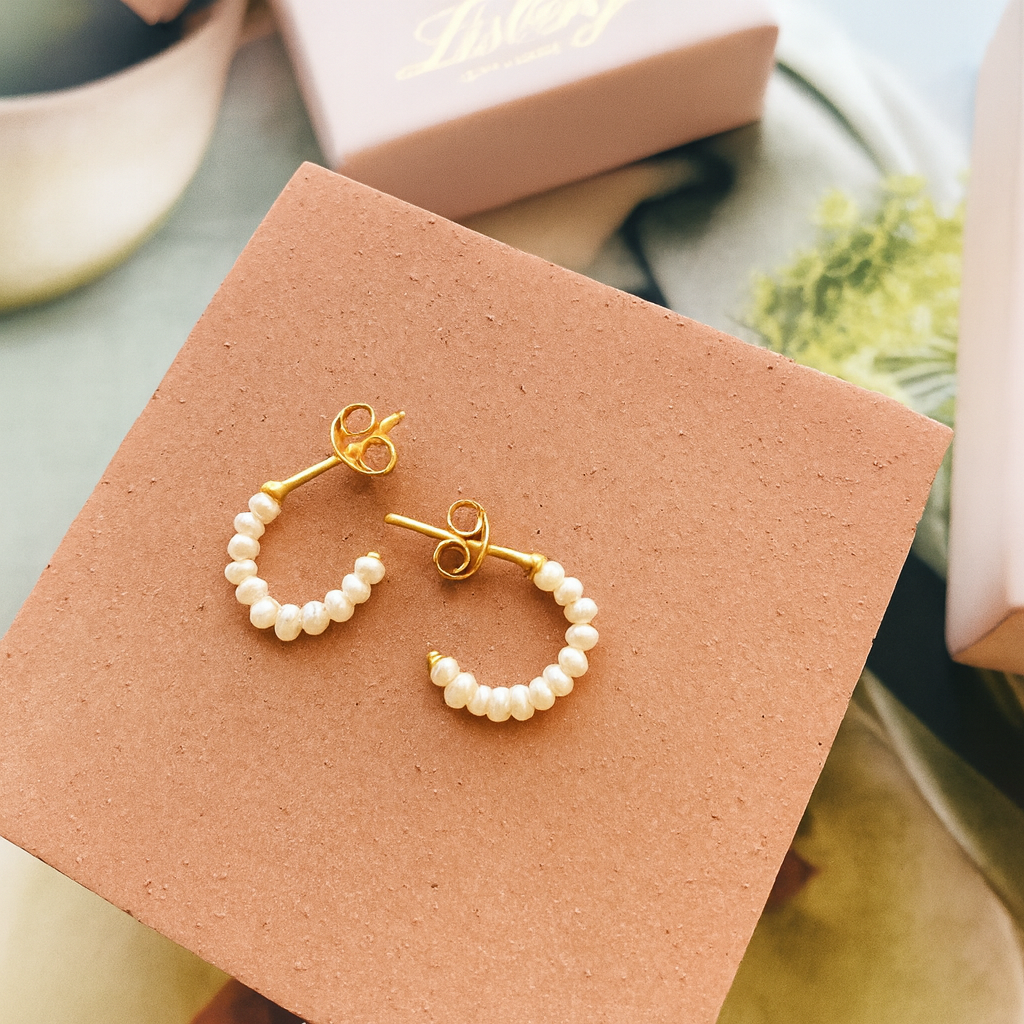 Emma petite hoops perle i forgyldt sterlingsølv