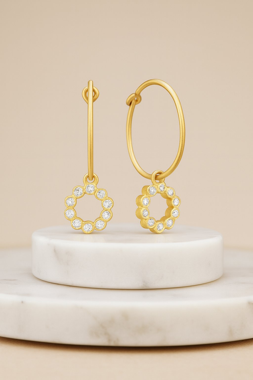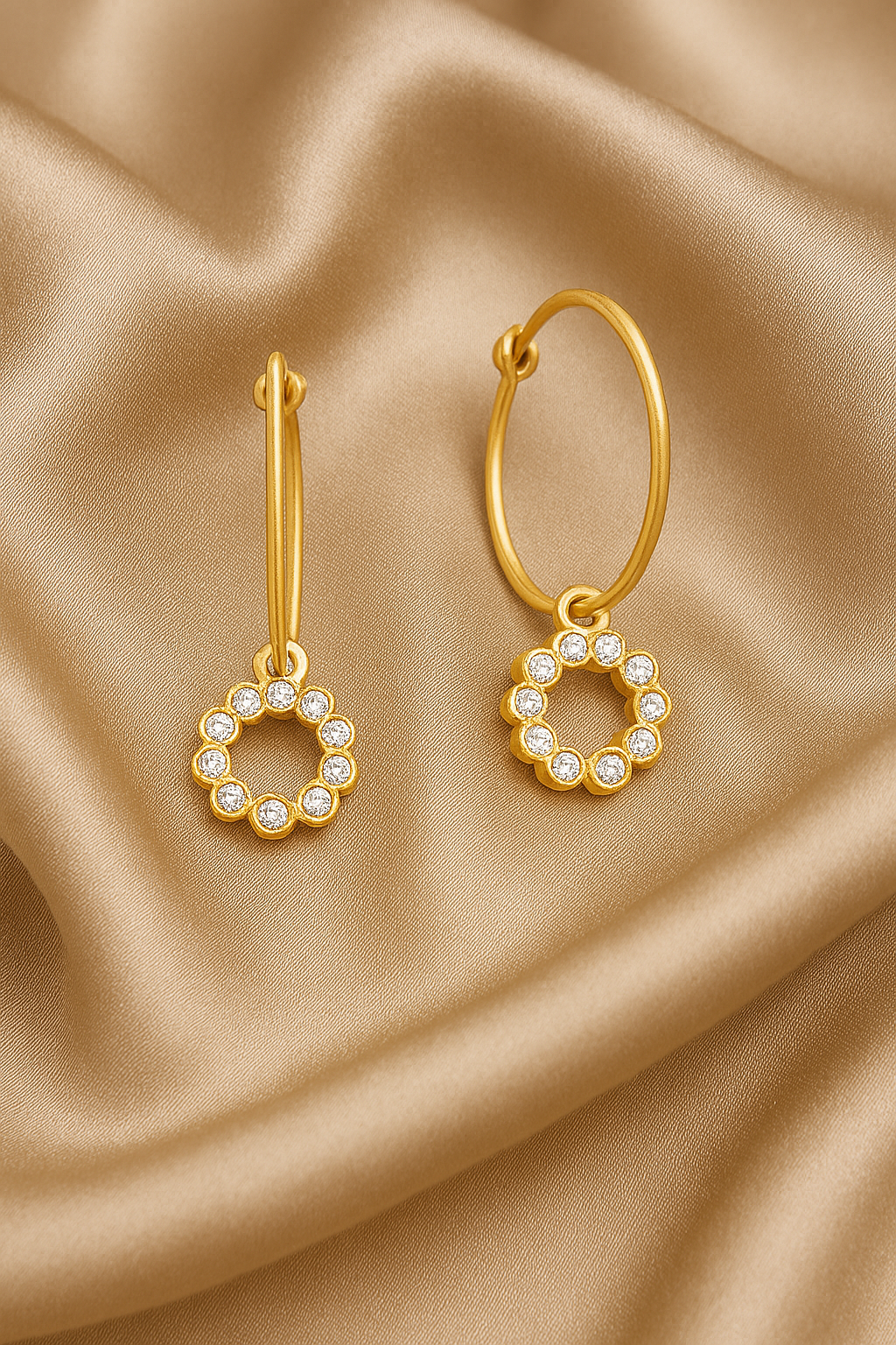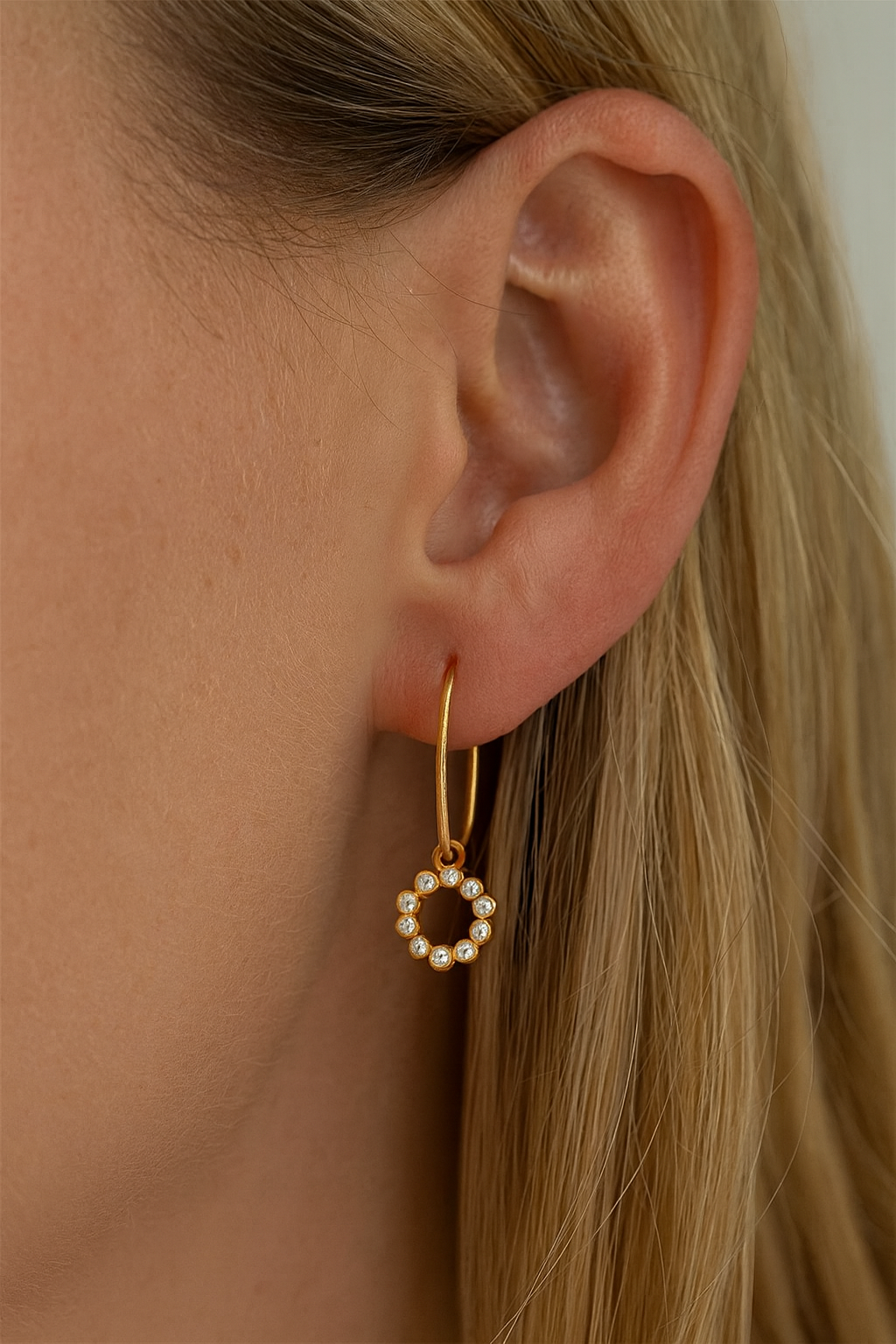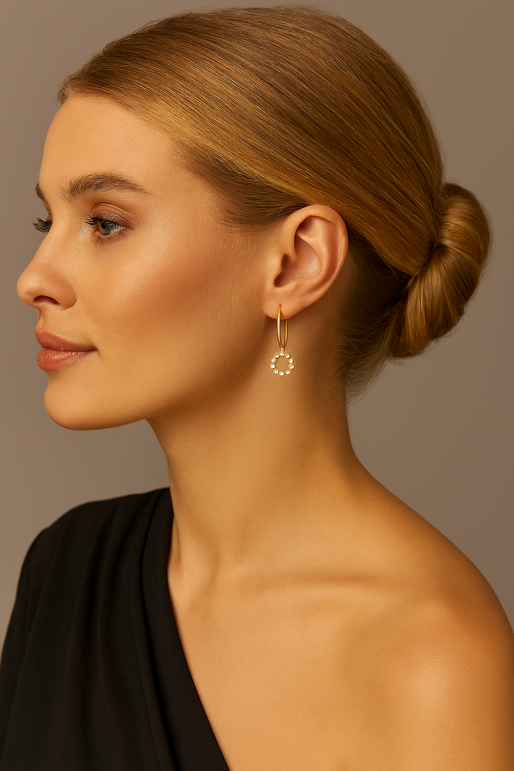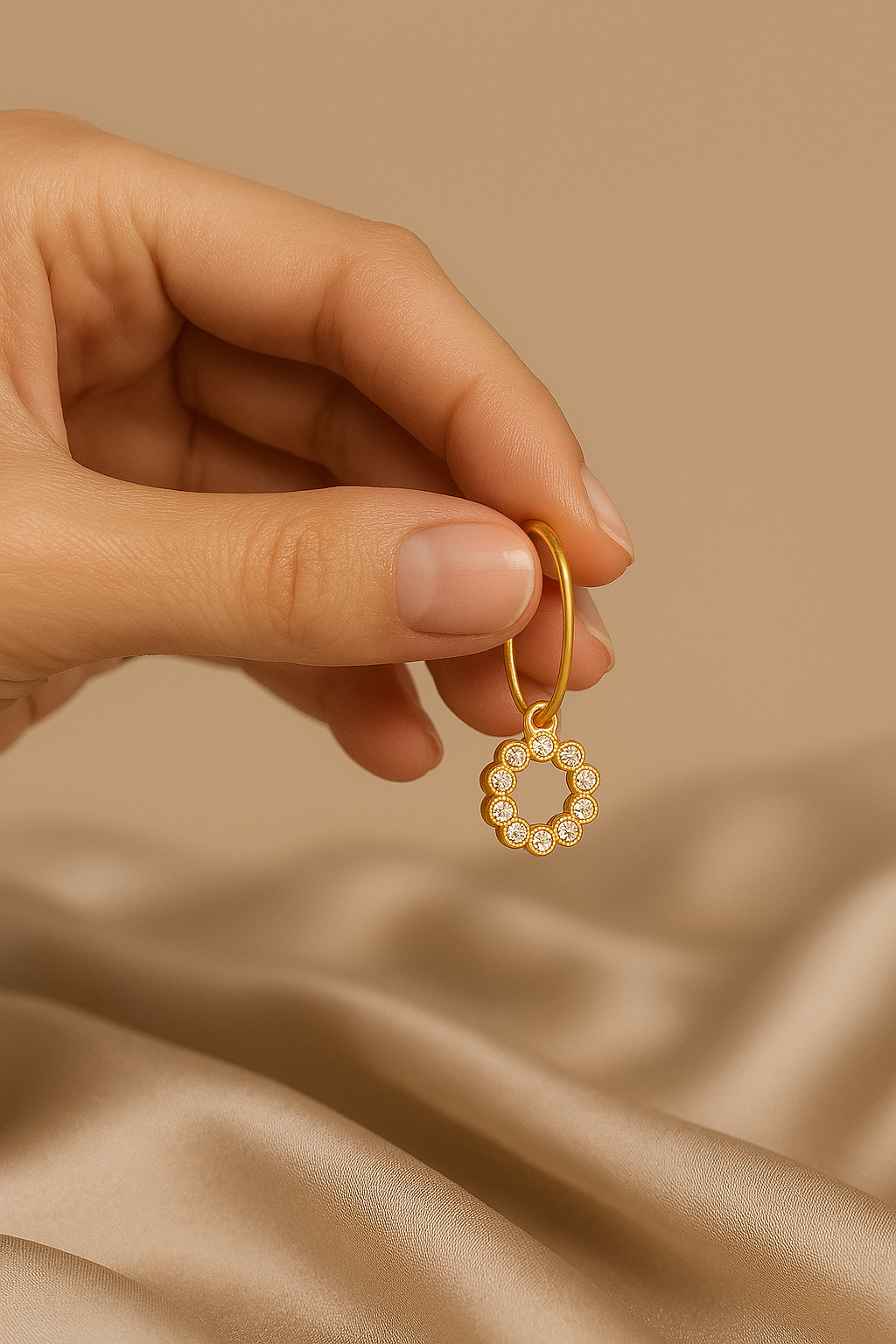 Zirkonia-stenene tilfører et diskret, men smukt glimt, der løfter dit outfit uden at virke overdøvende ✨. Det tidløse design gør disse hoops til et smykke, du kan vende tilbage til igen og igen – uanset sæson og anledning 🌿.