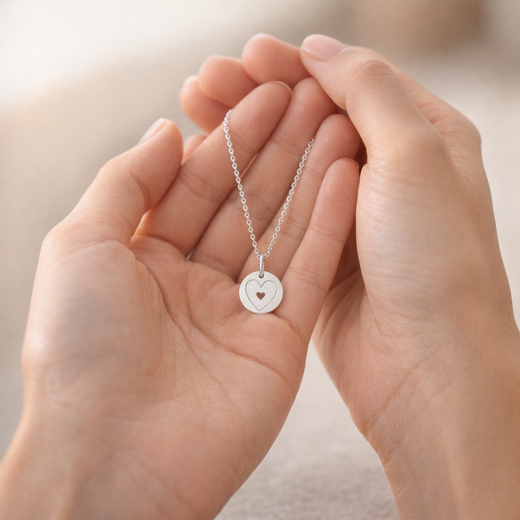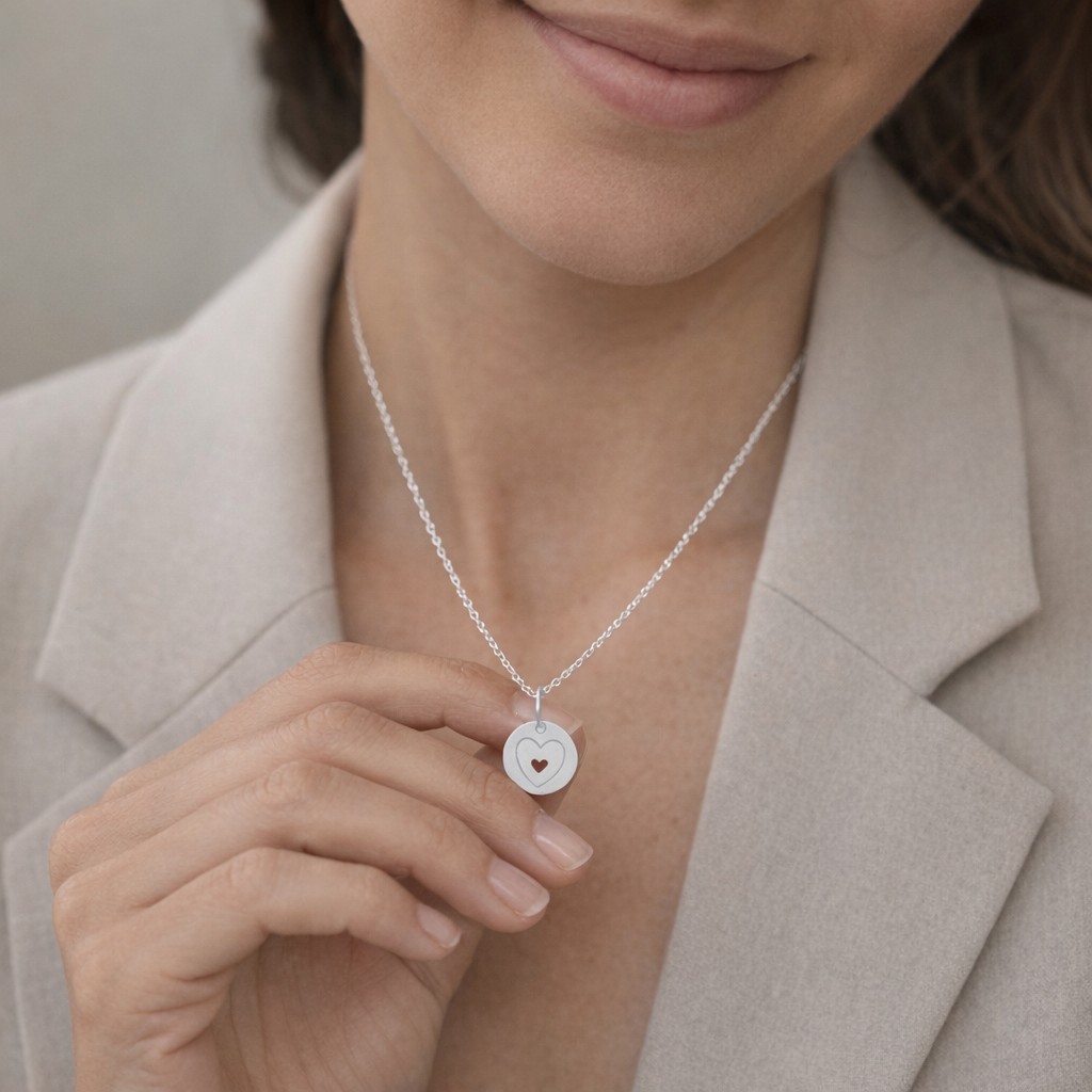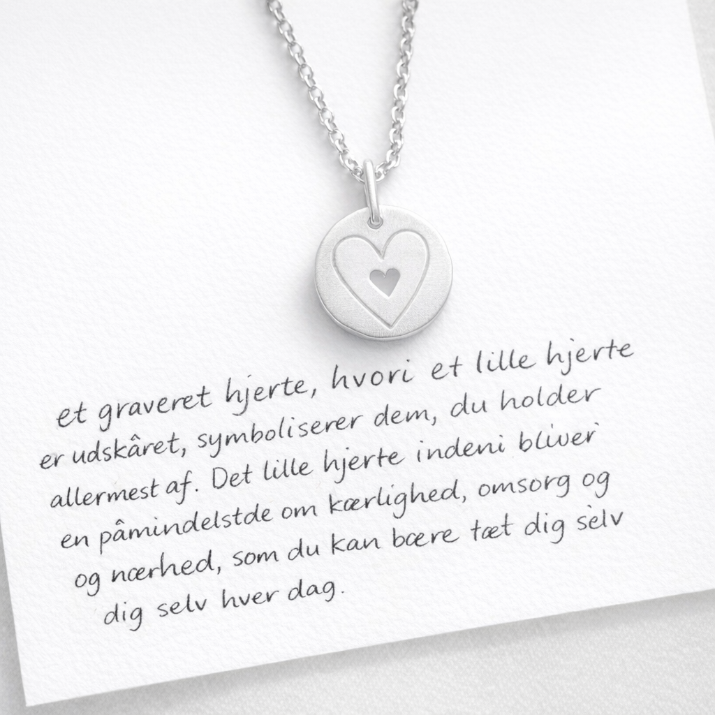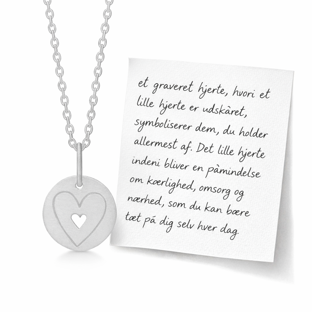 Dit hjerte i mit hjerte sølv. Family 1 vedhæng sølv. Vedhæng med motiv af et udskåret hjerte i sterlingsølv fra Frk. Lisberg. Vedhænget kan sættes på både halskæder og armbånd alt efter ønske. Vedhænget kan let kombineres med andre af Frk. Lisberg’s mange message vedhæng, hvis man ønsker det, men er også rigtig fin at bære alene.