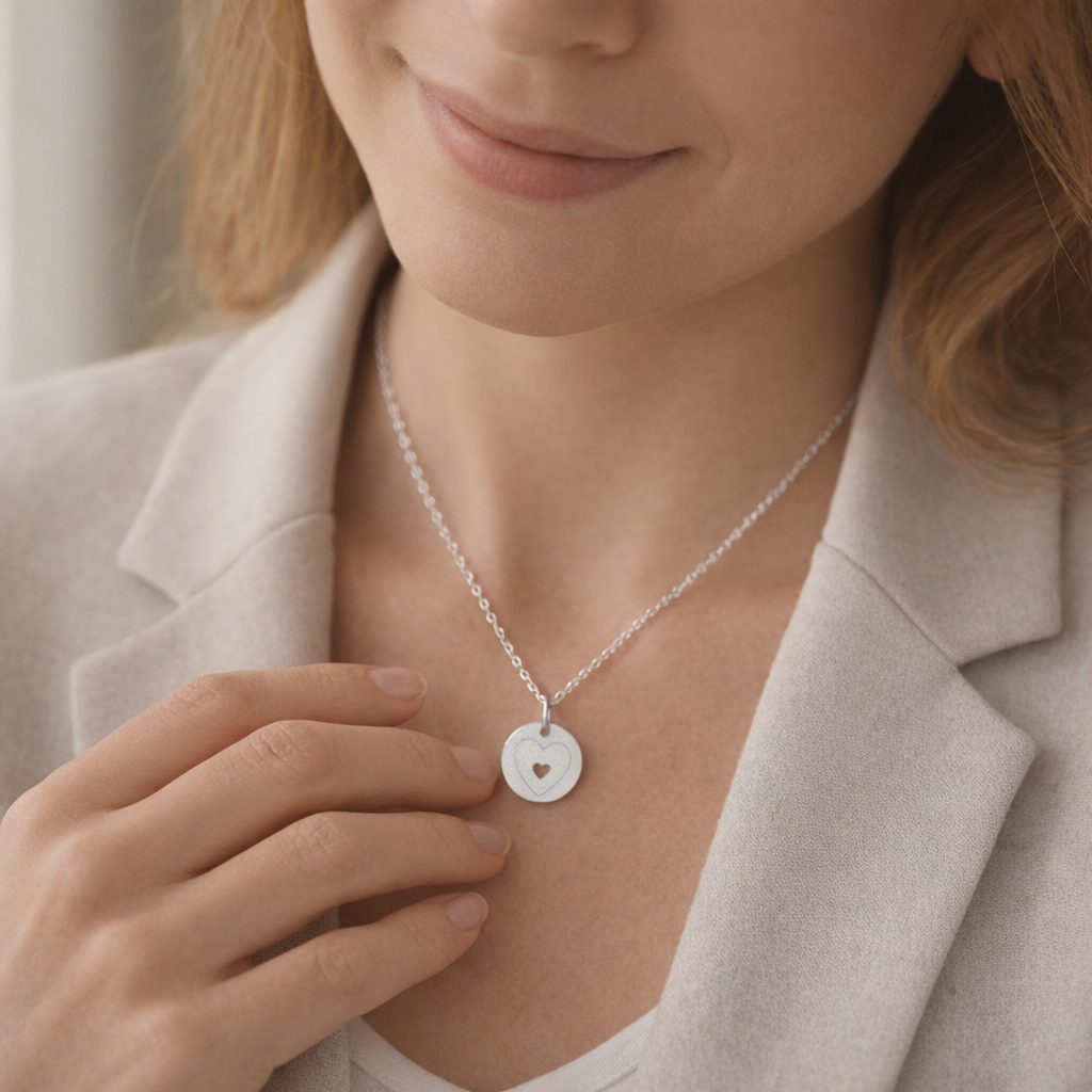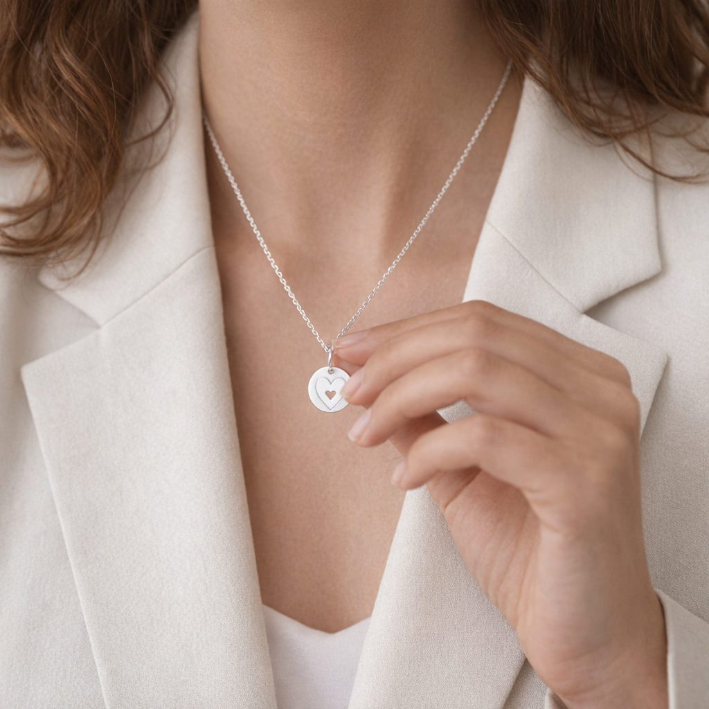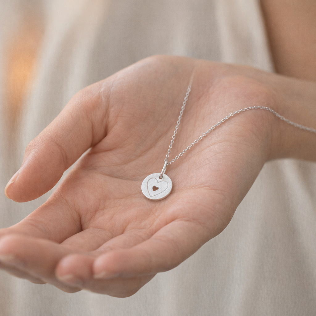 Vedhæng med motiv af et udskåret hjerte i sterlingsølv