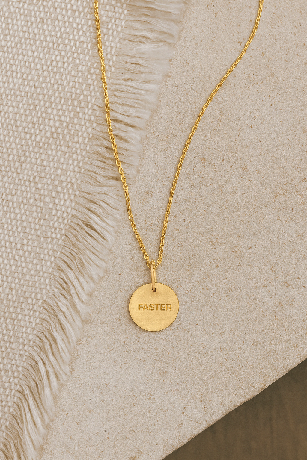 Vedhæng med teksten FASTER