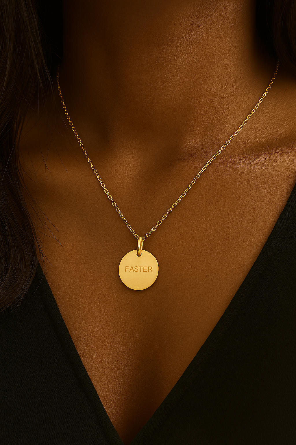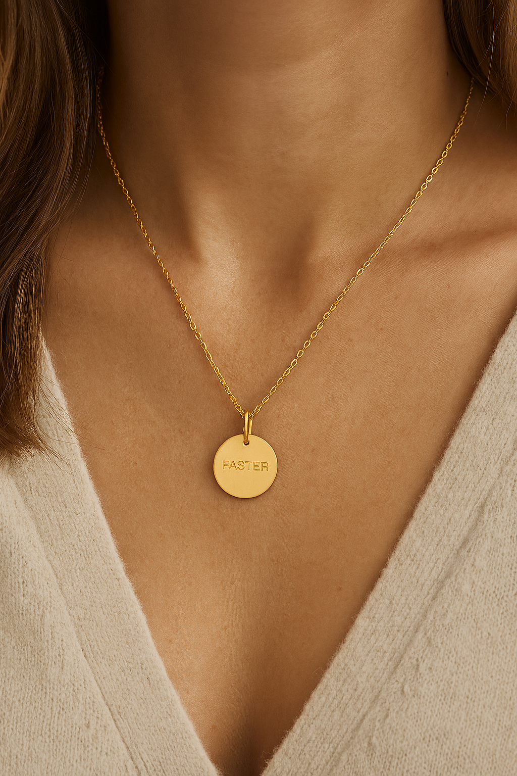 Vedhæng med teksten FASTER i 14 karat forgyldt sterlingsølv fra Frk. Lisberg. Vedhænget kan sættes på både halskæder og armbånd alt efter ønske. Vedhænget kan let kombineres med andre af Frk. Lisberg’s mange message vedhæng, hvis man ønsker det, men er også rigtig fin at bære alene.
