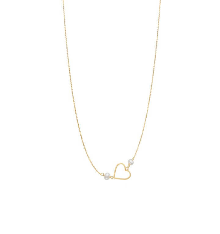 Fineste “Nora” halskæde med symbolsk hjerte i 14 karat forgyldt sterlingsølv med små ferskvandsperler.