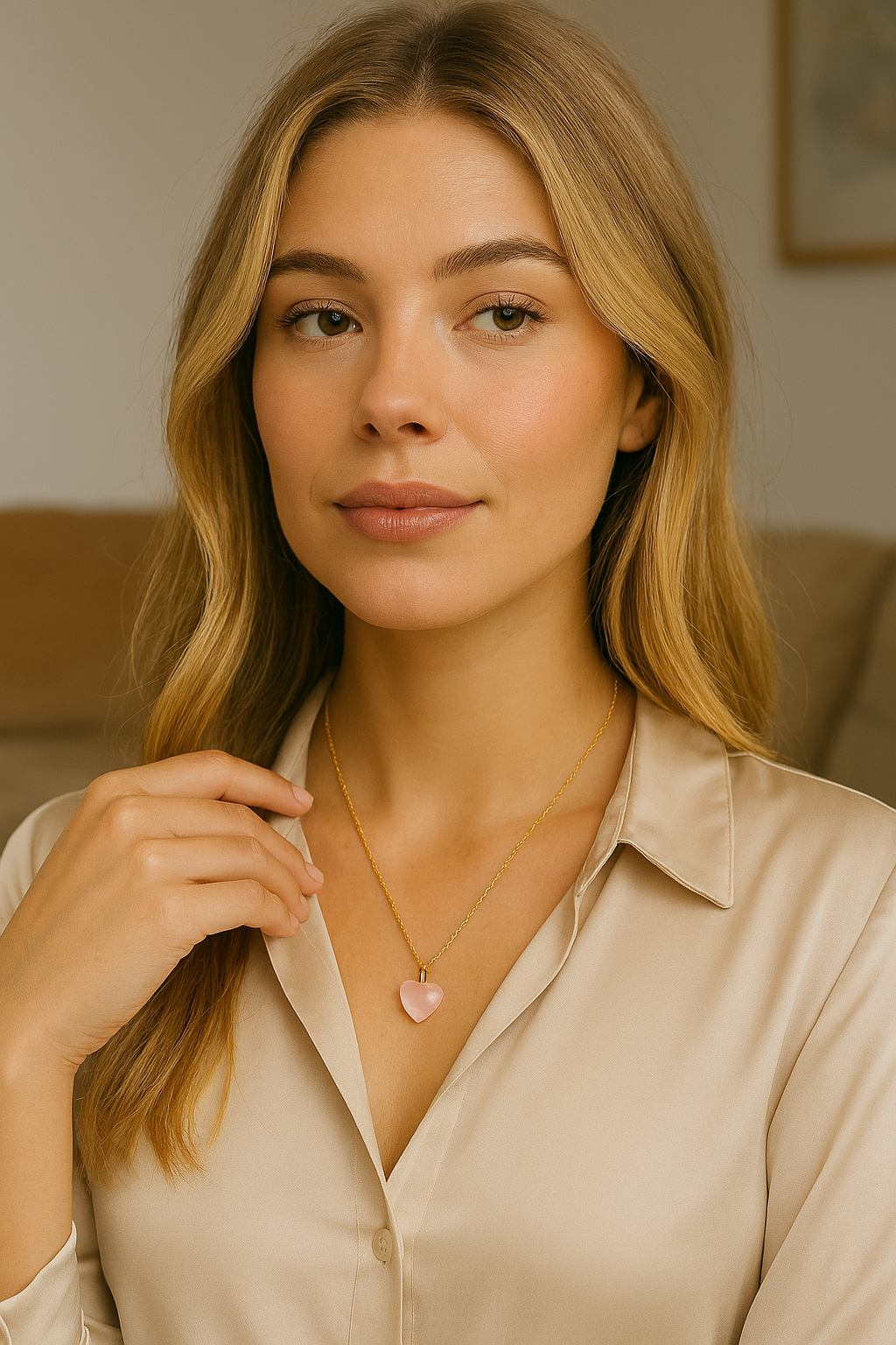 Produktbeskrivelse af Hjerte halskæde med rosa ædelsten