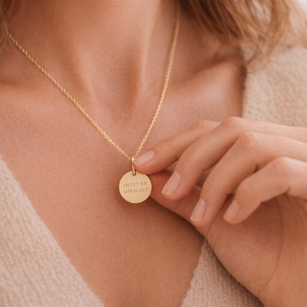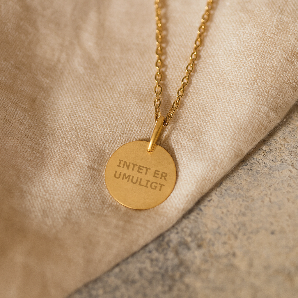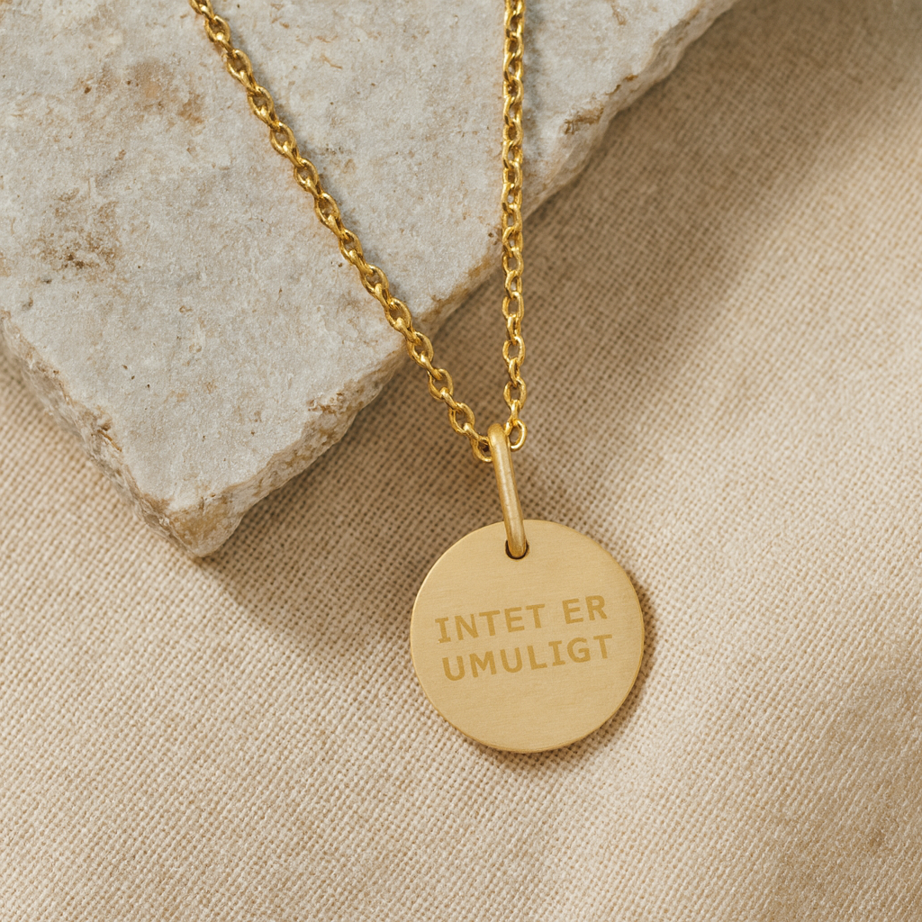 Vedhæng med teksten ‘INTET ER UMULIGT’