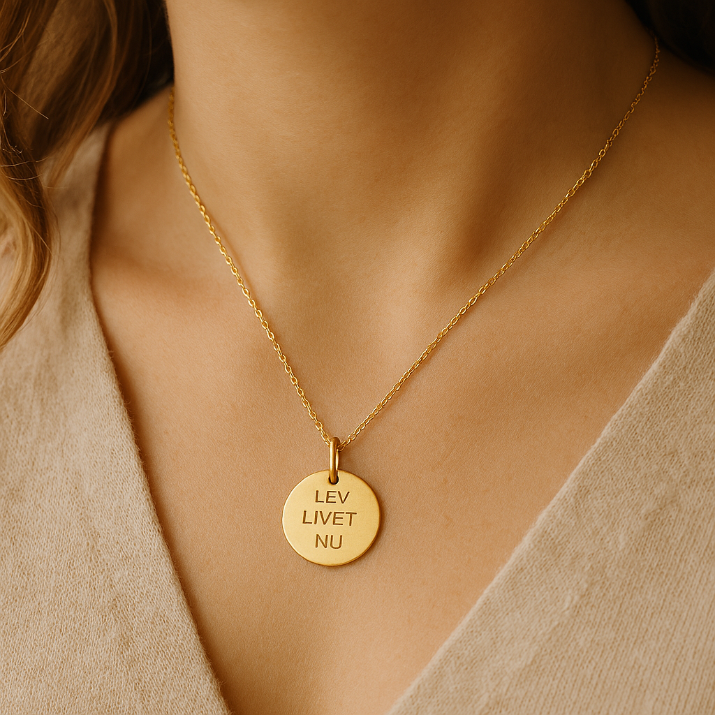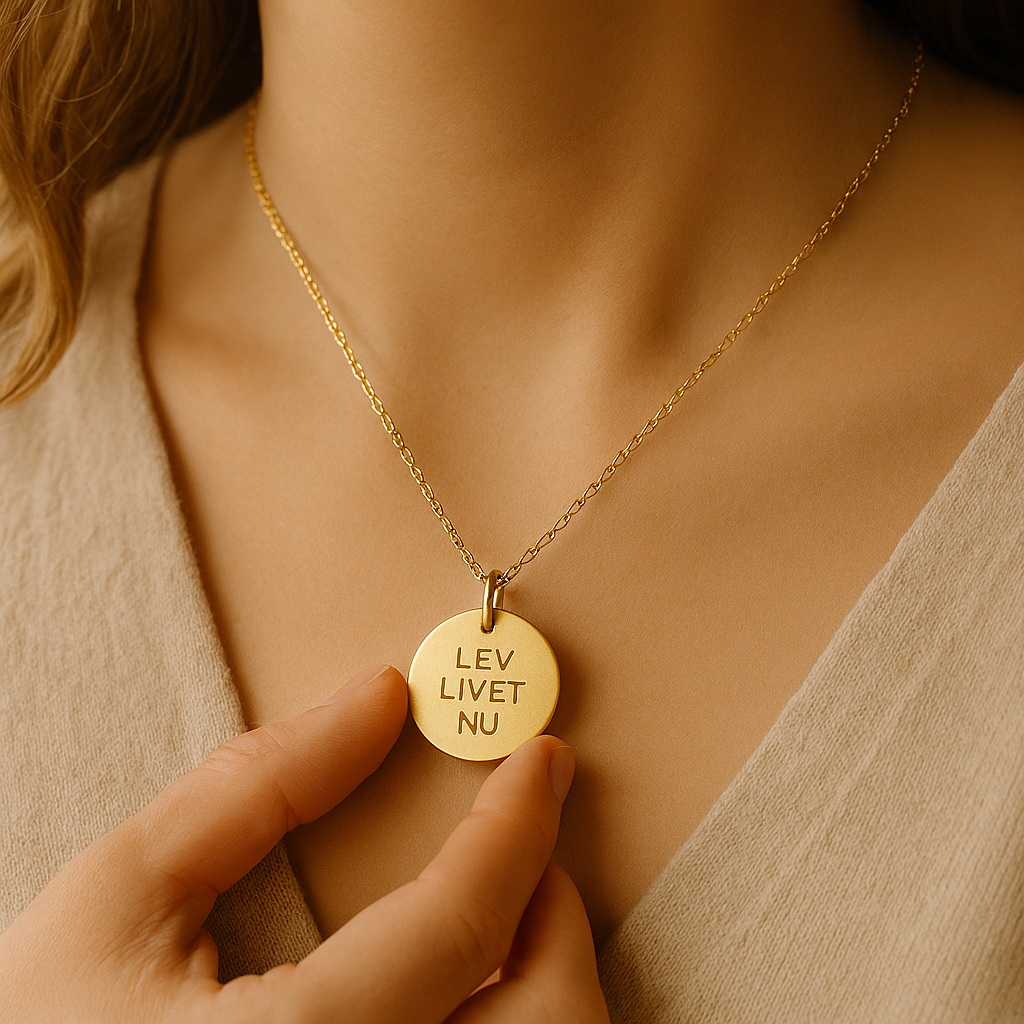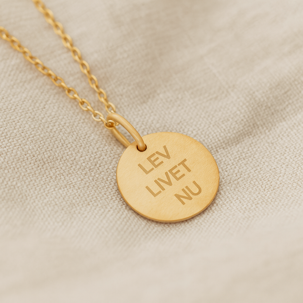 Vedhæng med teksten ‘LEV LIVET NU’ i sterlingsølv