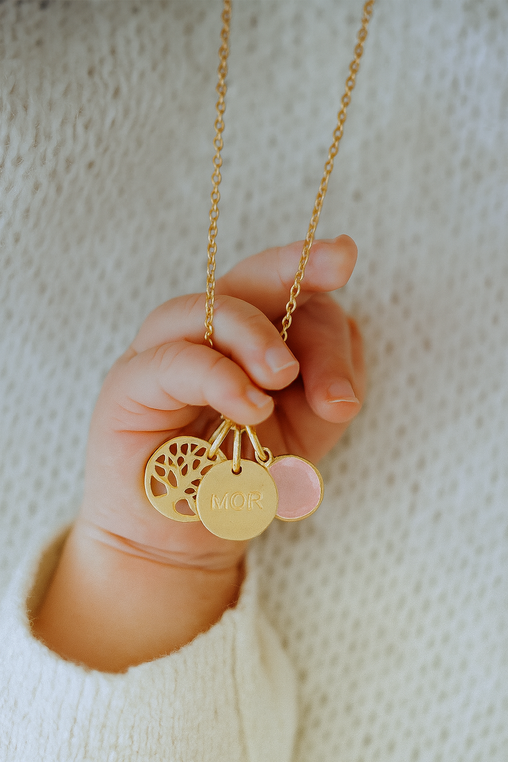 Halskæden er den perfekte gave til mor. Et smykke til mor fra hendes børn og familie til mors dag eller hendes fødselsdag. Moderskabets stolthed indkapslet i et smukt smykke til den nybagte mor, der har fået en ny titel. En titel som mor der er ønsket og tilstræbt og livsforandrende. Denne halskæde er et perfekt minde om en helt særlig tid hvor familieforøgelse og graviditet er i fokus for den nye mor.