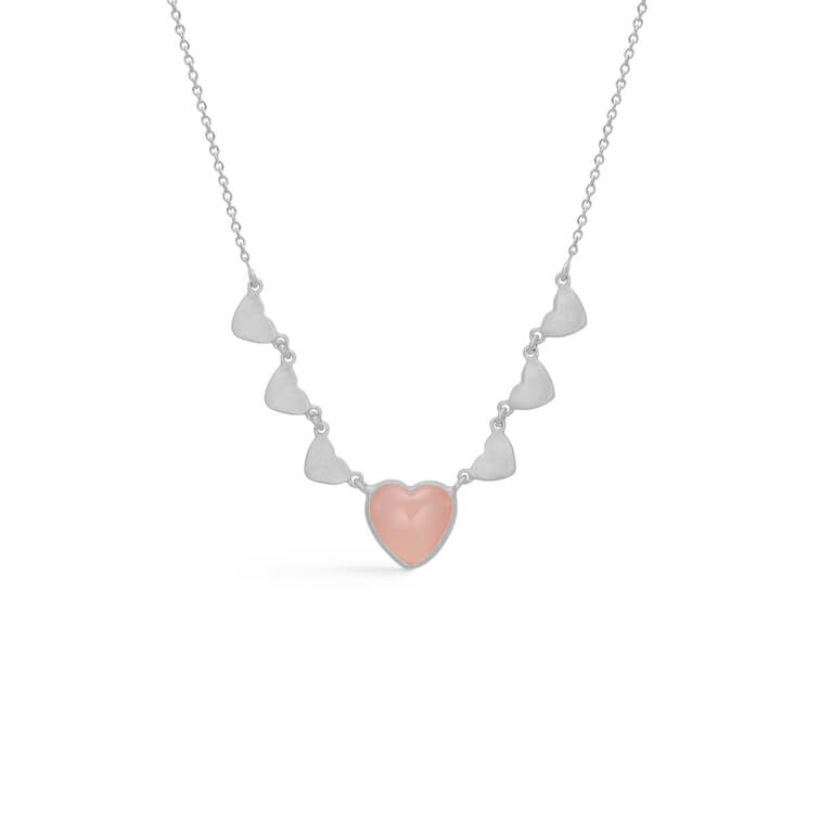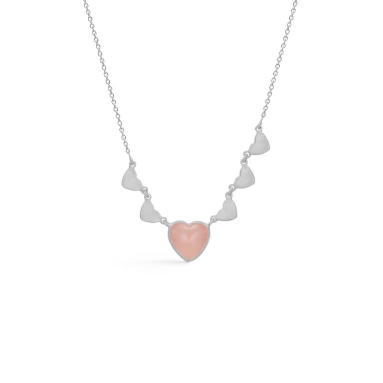 Love Heart halskæde rosa chalcedon 1-6 hjerter