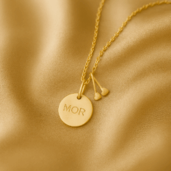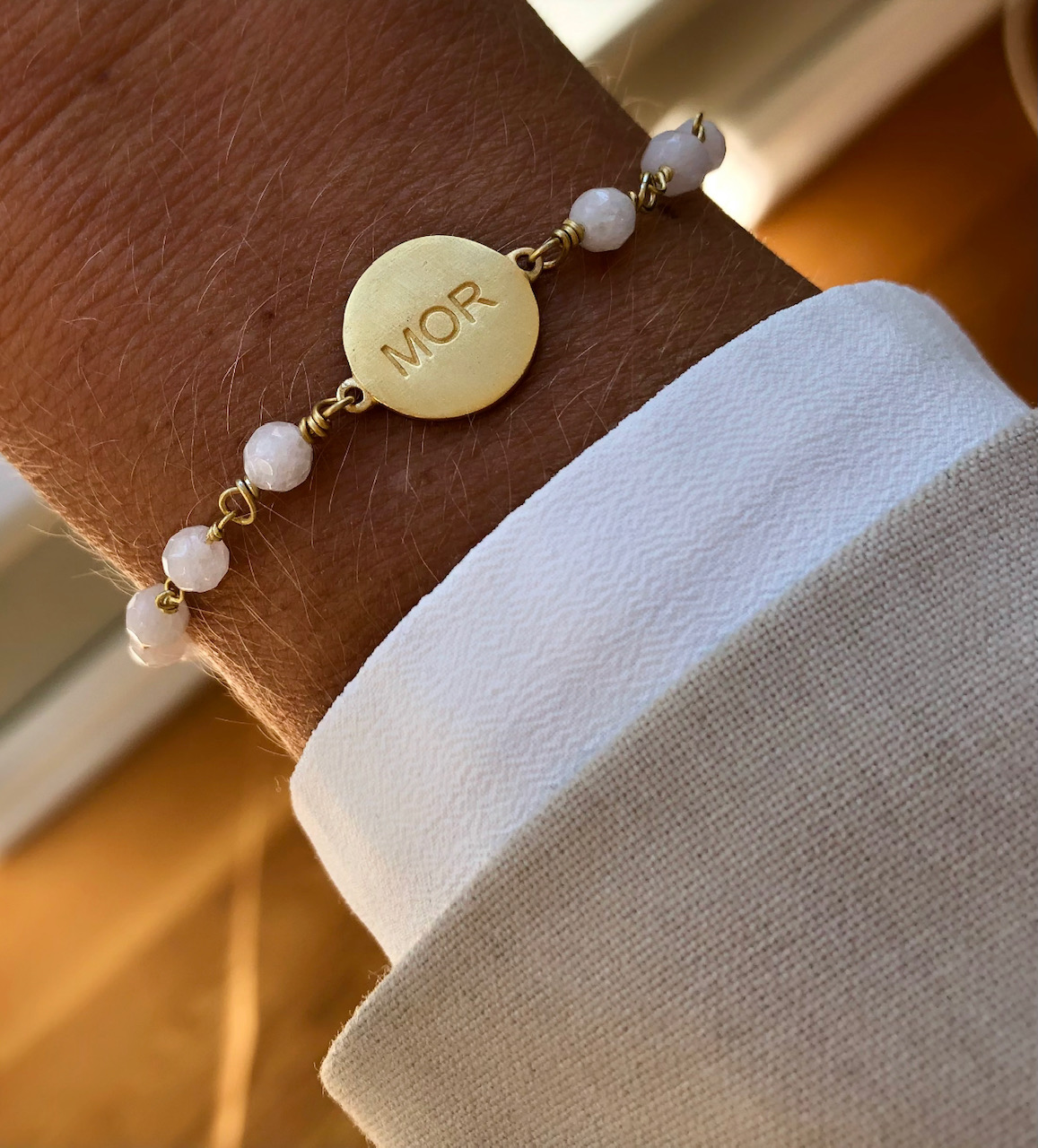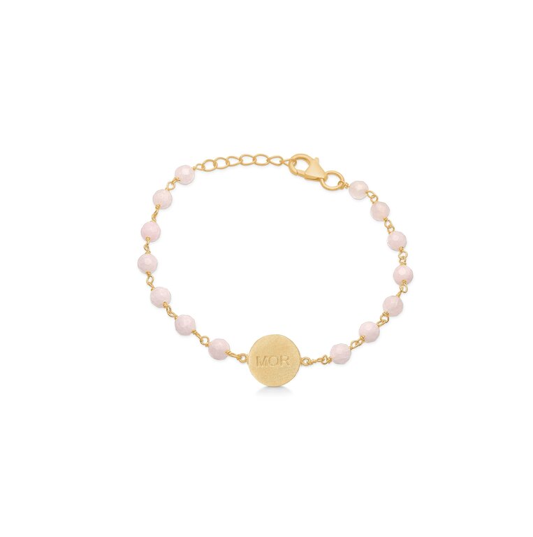Fineste “Nora” armbånd med titel amulet i 14 karat forgyldt sterlingsølv og rosa chalcedon ædelsten.