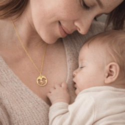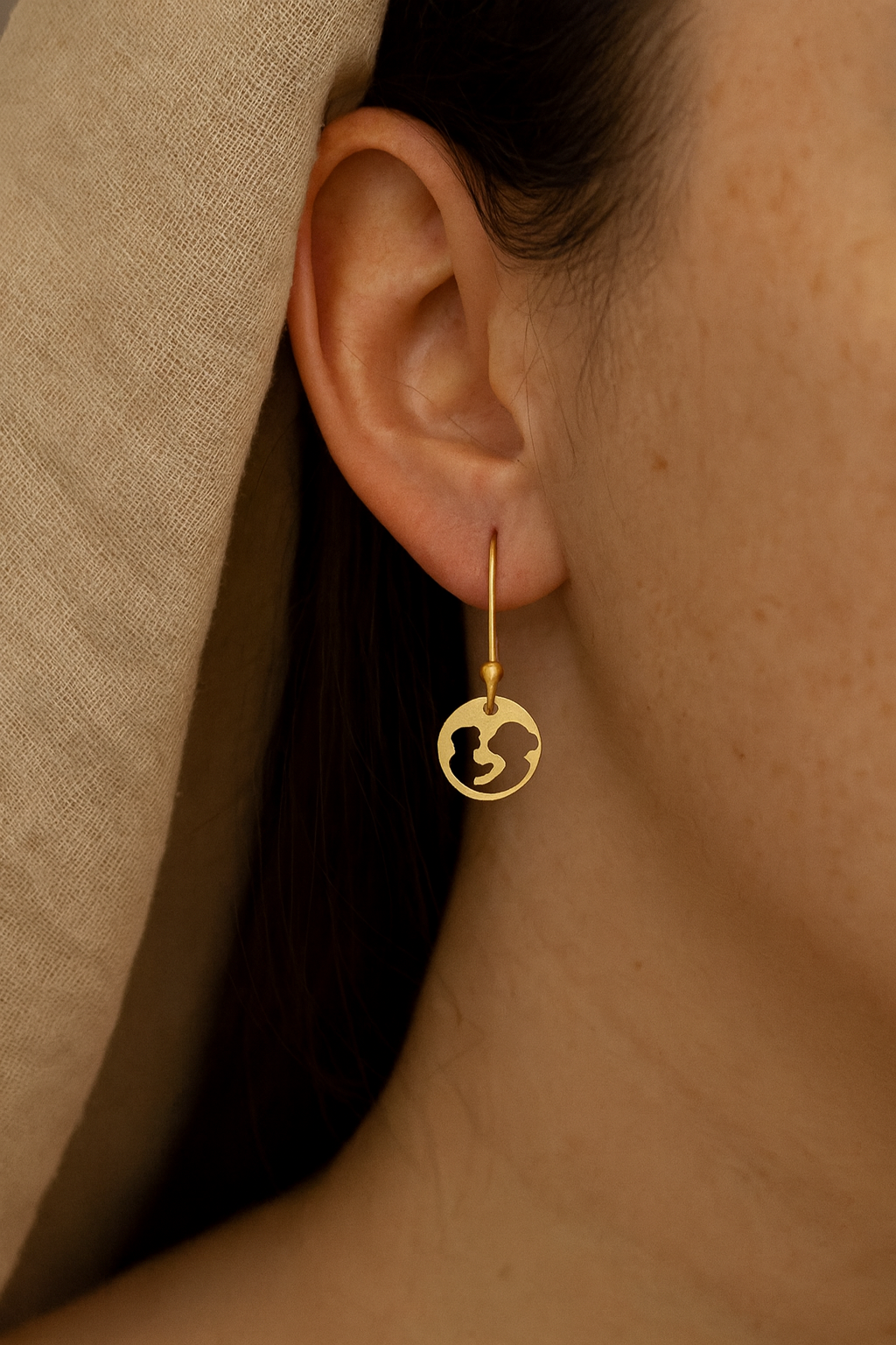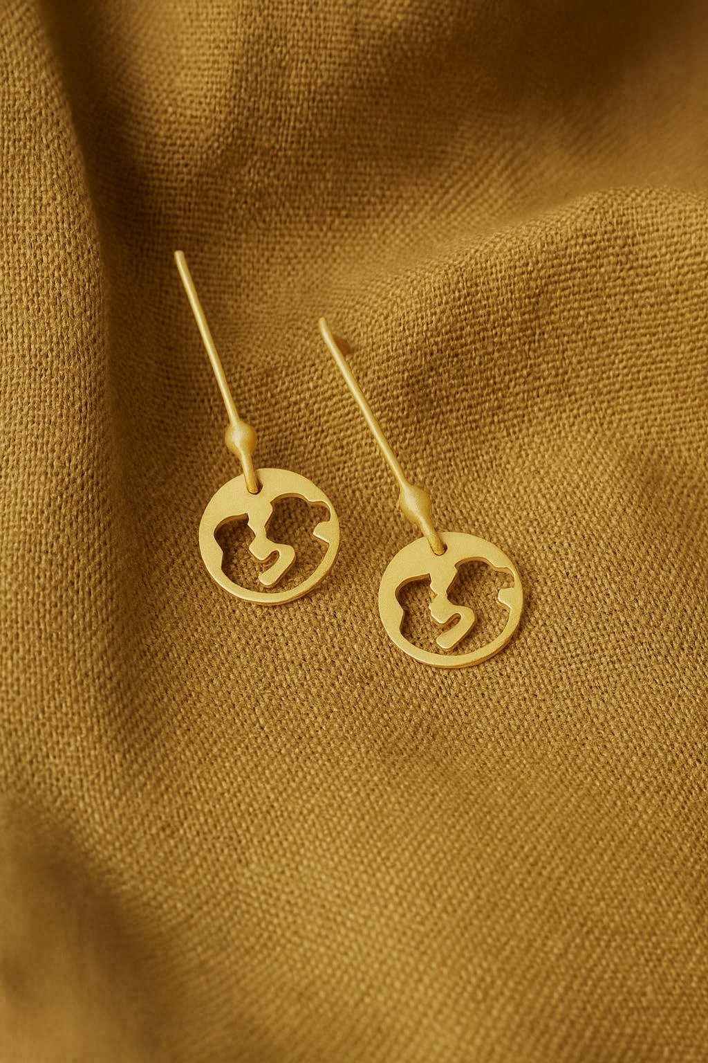 Øreringe med motiv af mor og barn i 14 karat forgyldt sterlingsølv fra Frk. Lisberg. Øreringene kan bæres som sæt sammen med Frk. Lisberg’s mange message halskæder, hvor motivet også findes, hvis man ønsker det, men er kan sagtens bære alene.