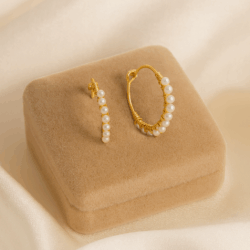 Elegant scrunchie hårelastik i satin og tyl med små dots i champagne nuance.
