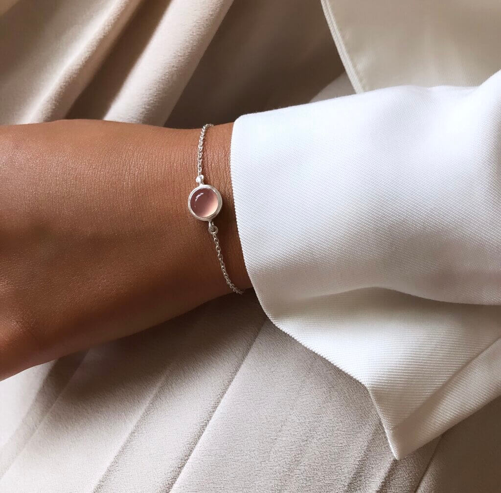 Armbåndet med rosa chalcedon er et personligt smykke, som er oplagt som morsdag gave, barselsgave, julegave og/eller fødselsdagsgave til en du holder af. Eller hvis du blot ønsker at forkæle dig selv. Armbåndet kan også gives i fx studentergave, konfirmationsgave, årsdags gave eller lignende anledninger.