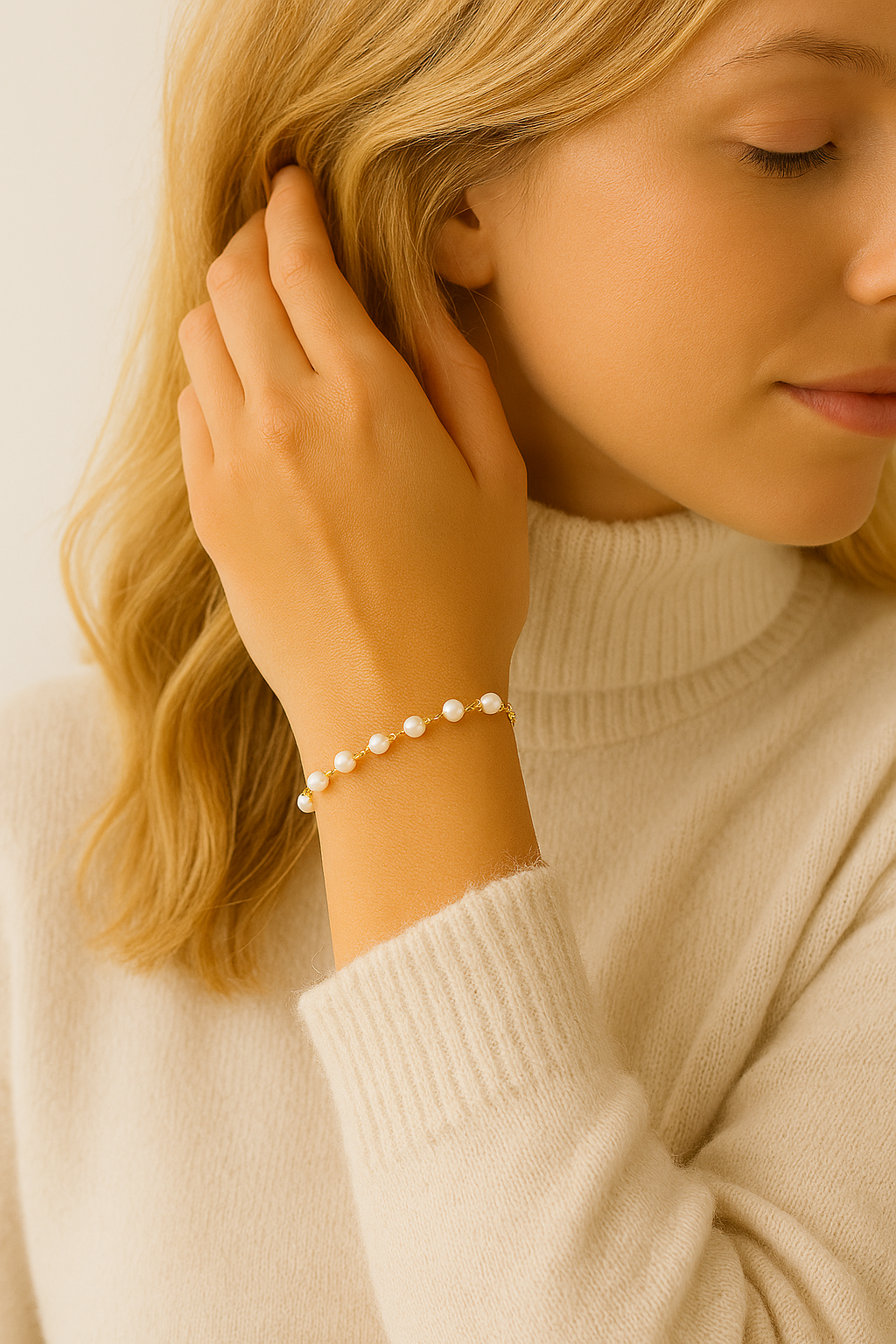 Nora multi armbånd med små ferskvandsperler i 14 karat forgyldt sterlingsølv er et personligt smykke, som er oplagt som morsdag gave, barselsgave, julegave og/eller fødselsdagsgave til en du holder af. Eller hvis du blot ønsker at forkæle dig selv. Armbåndet kan kombineres med smykker fra Nora kollektionen. På den måde får du hurtigt sikret en god gave, som kan bringe glæde, eller et flot sæt som du stolt kan vise frem. Armbåndet kan kombineres og bruges til både hverdag og fest, alt efter hvad man ønsker.