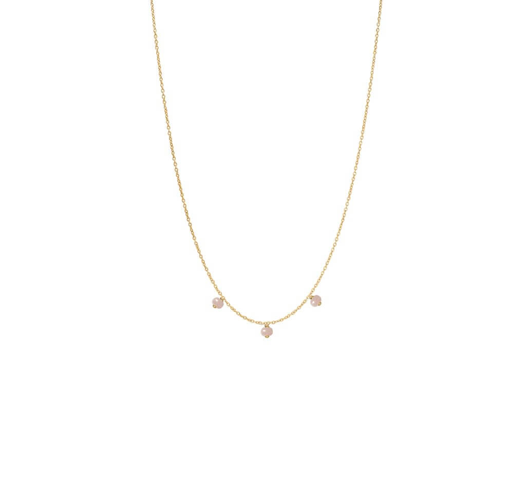 Nora halskæde i 14 karat forgyldt sterlingsølv med små rosa chalcedon ædelsten.