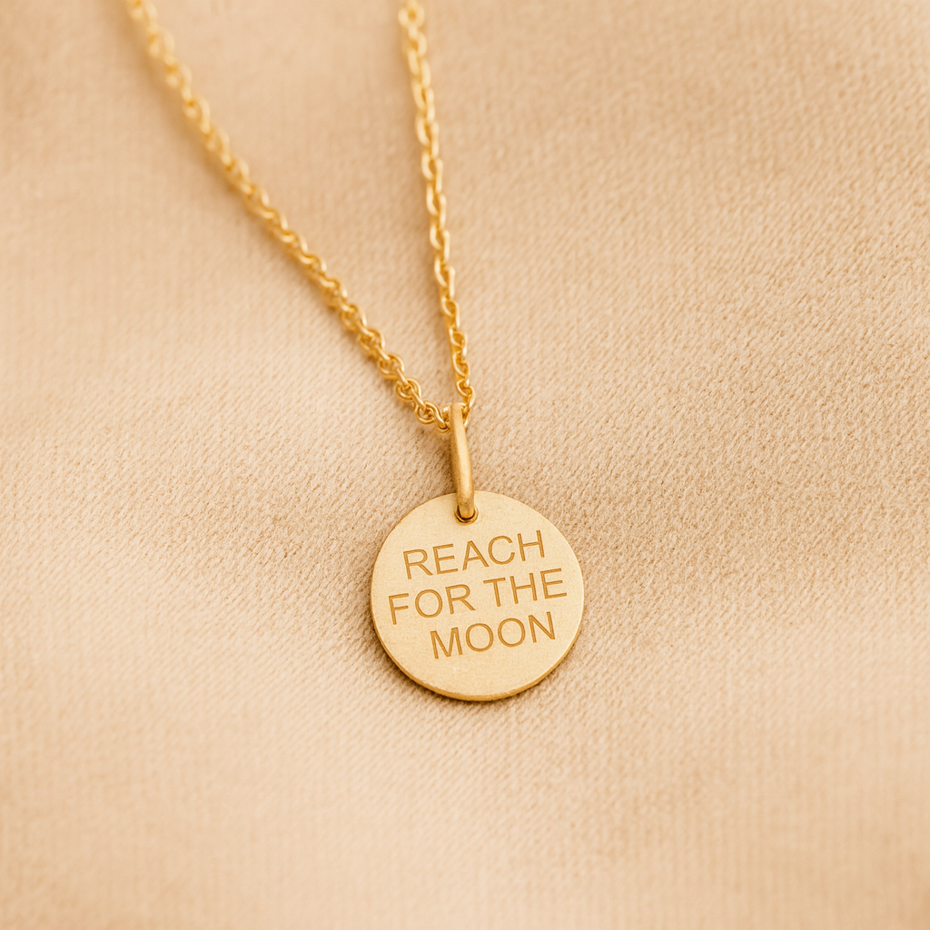 “REACH FOR THE MOON” er til dig, der tør drømme. Til dig, der står over for nye begyndelser, store beslutninger eller stille håb, som vokser indeni. Det er et symbol på mod og vilje, men også på troen på, at selv det fjerne kan nås, hvis man tør strække sig efter det.